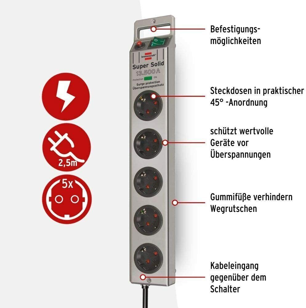 brennenstuhl Brennenstuhl ßberspannungsschutz-Steckdosenleiste Super-Solid 5-fach silber