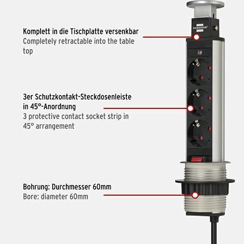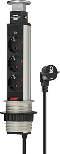 brennenstuhl Brennenstuhl Tower Power Tischsteckdosenleiste 3-Fach 2m Kabel Versenkbar Alu