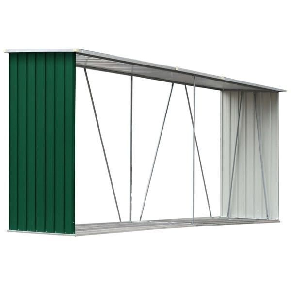 Brennholzlager 330x92x153 cm Grün aus verzinktem Stahl, belüftet und wetterfest