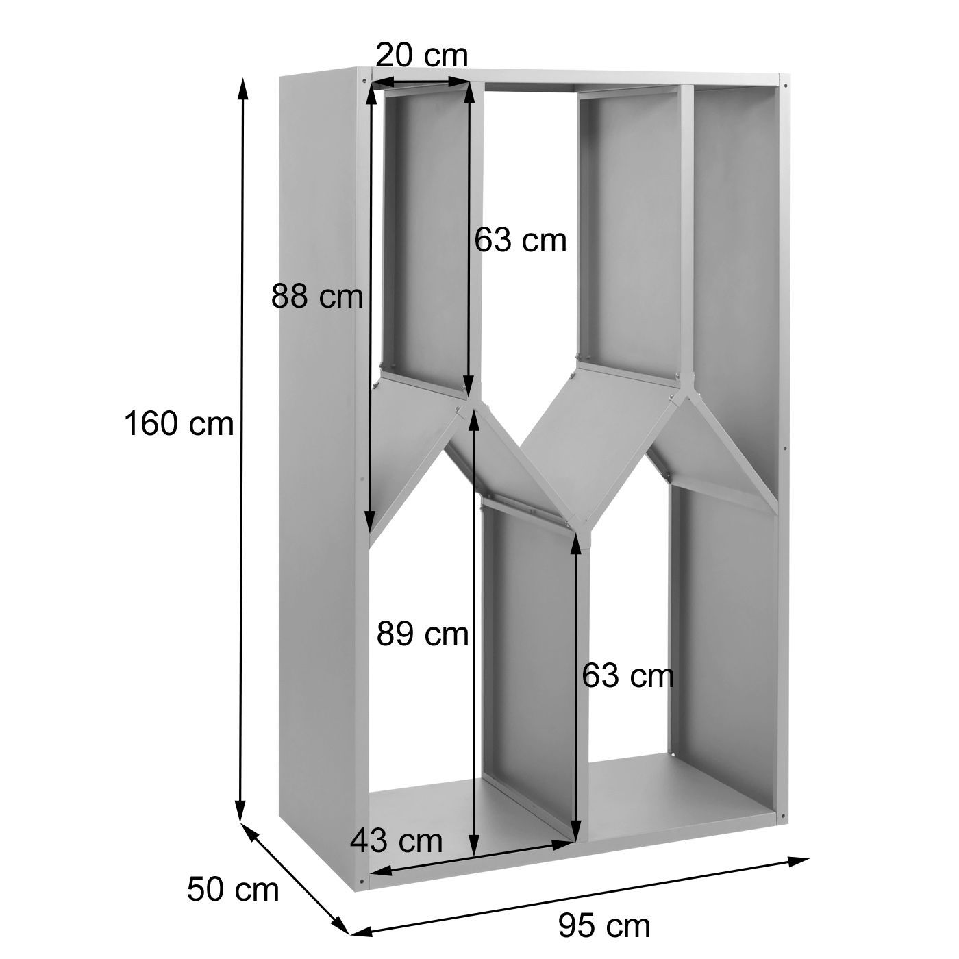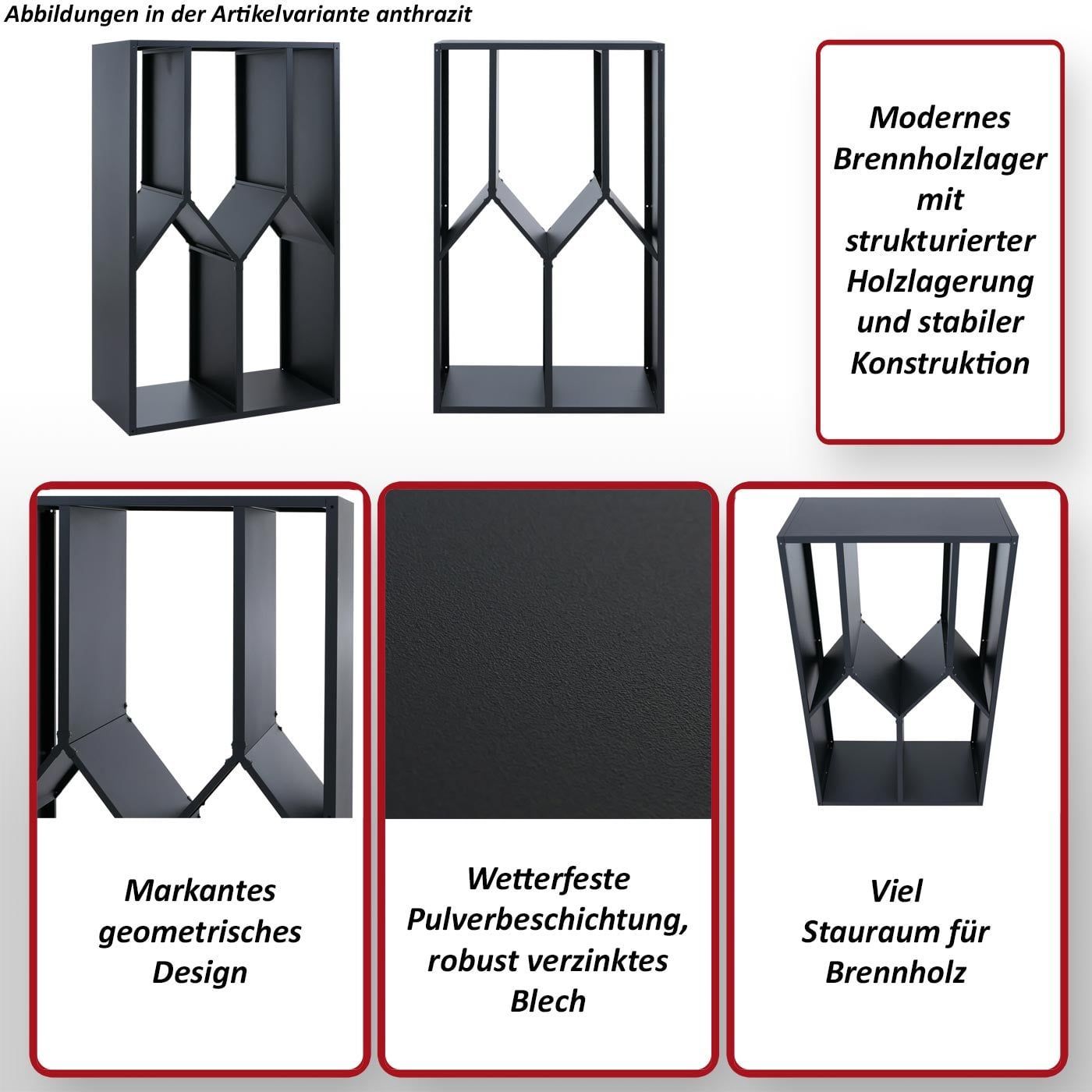 Mendler Brennholzlager HWC-P76, Feuerholzregal Holzlager Holzunterstand Metall 160x95x50cm