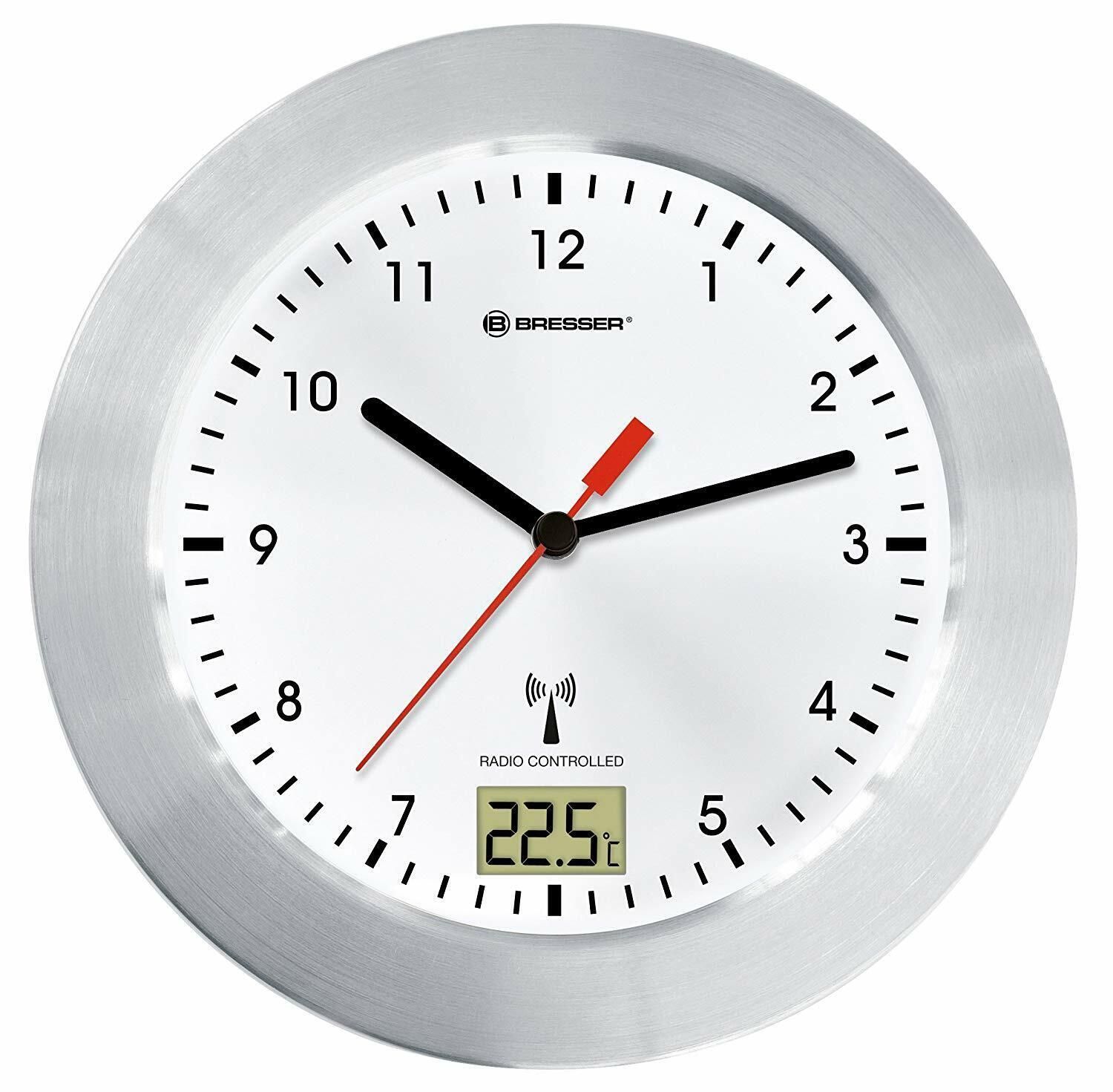 BRESSER Bresser MyTime Bad Wanduhr Funkuhr Temperaturanzeige Saugnäpfe Standfuß weiß