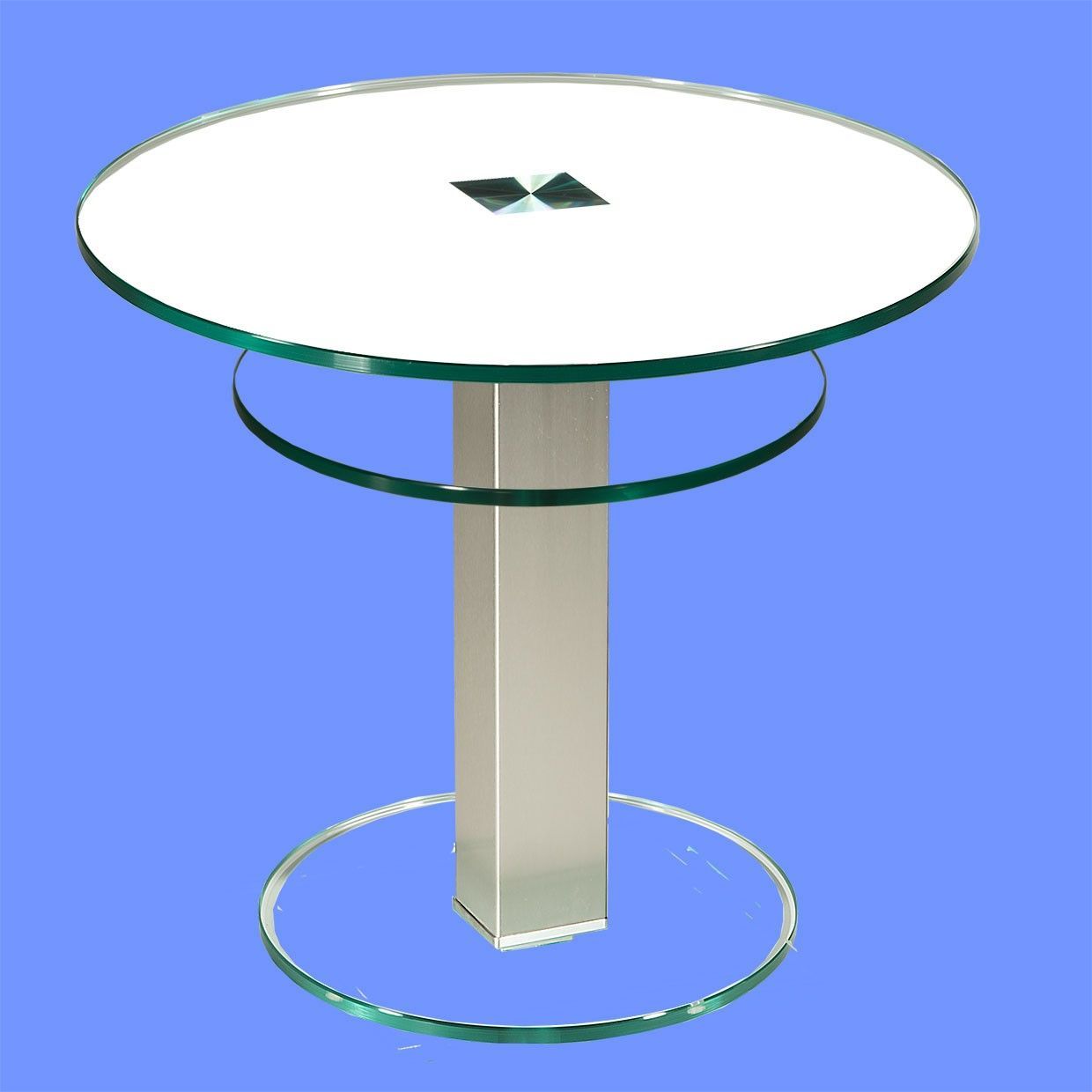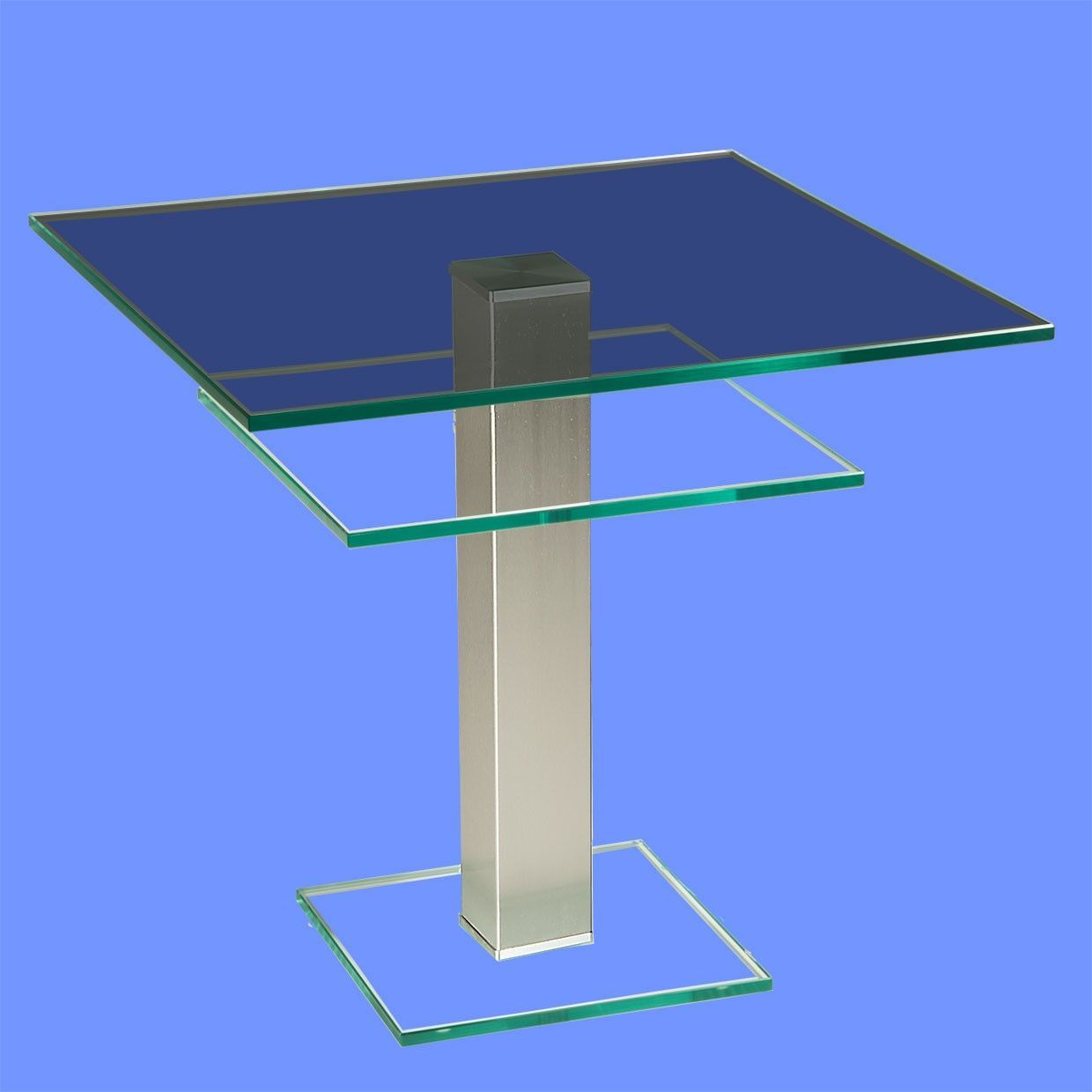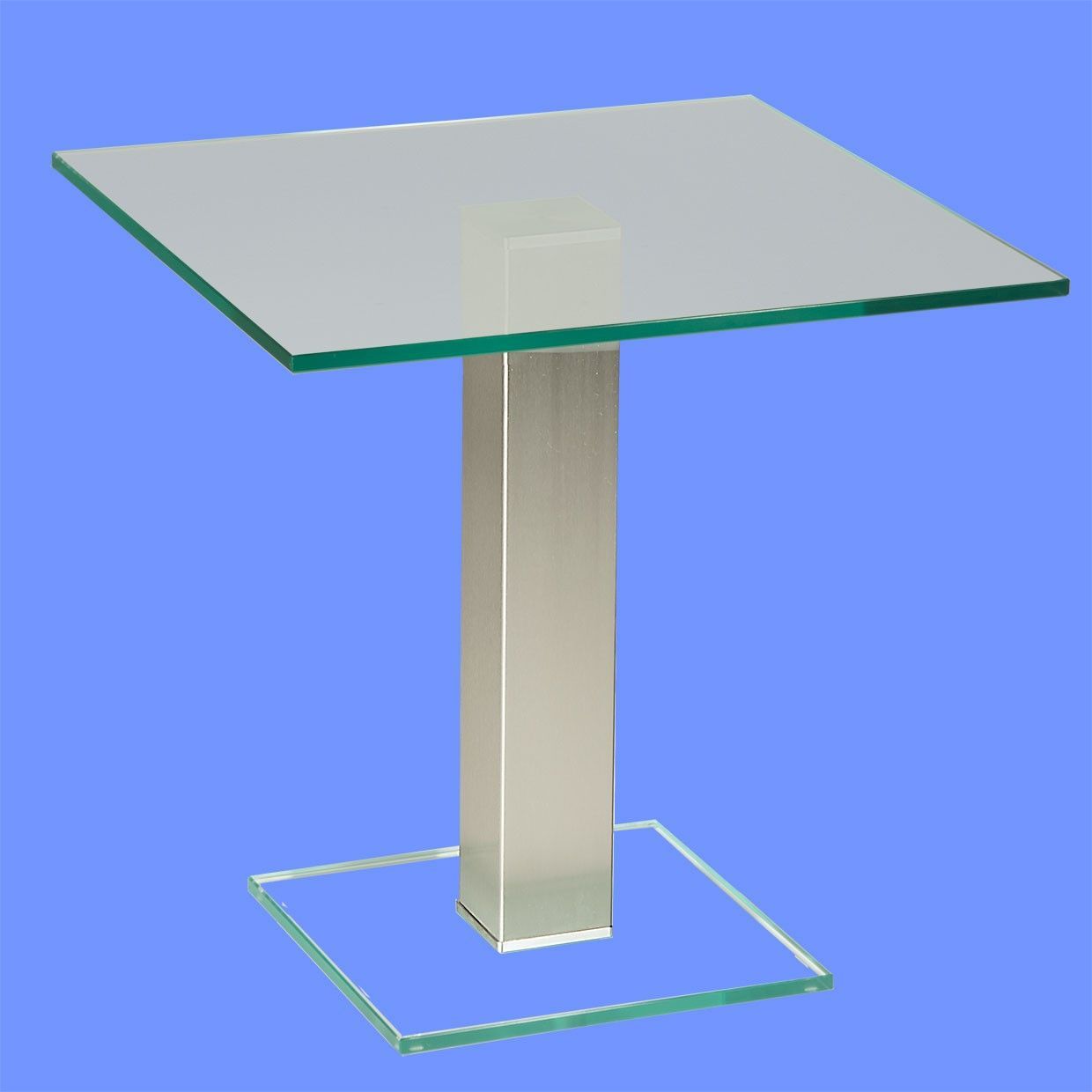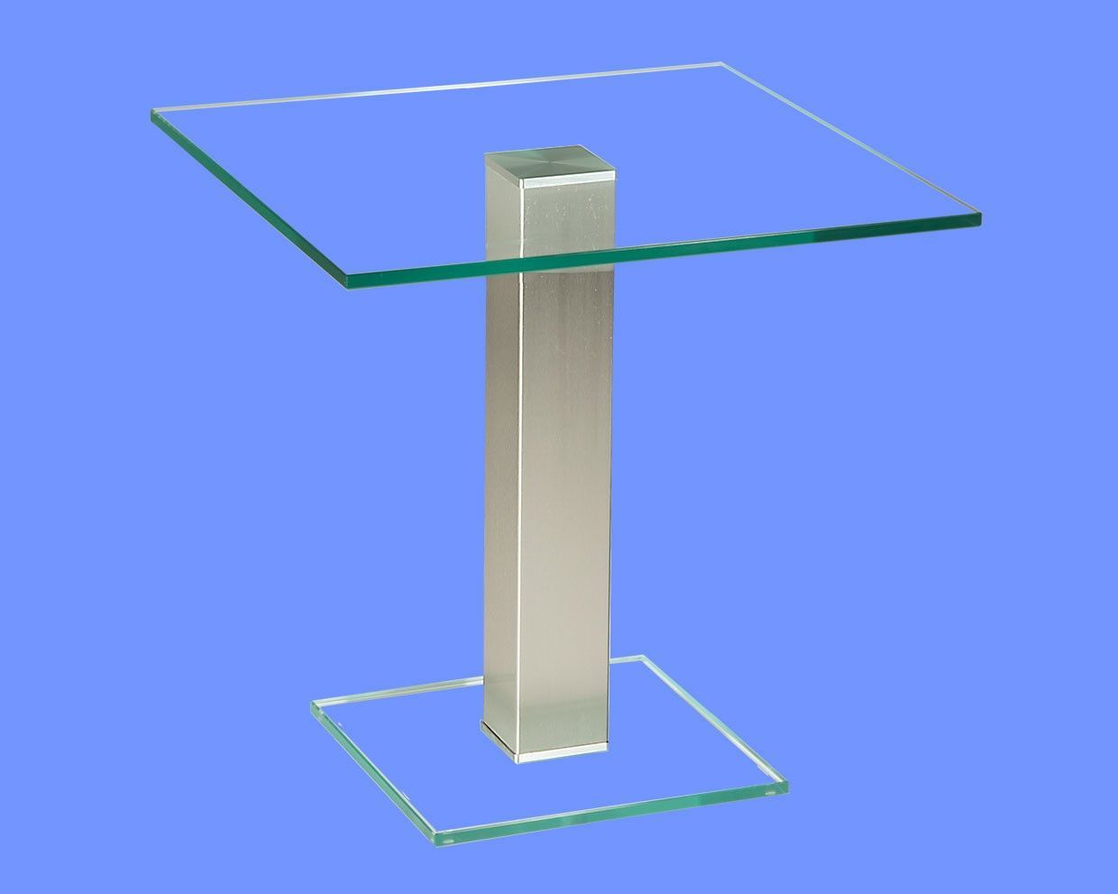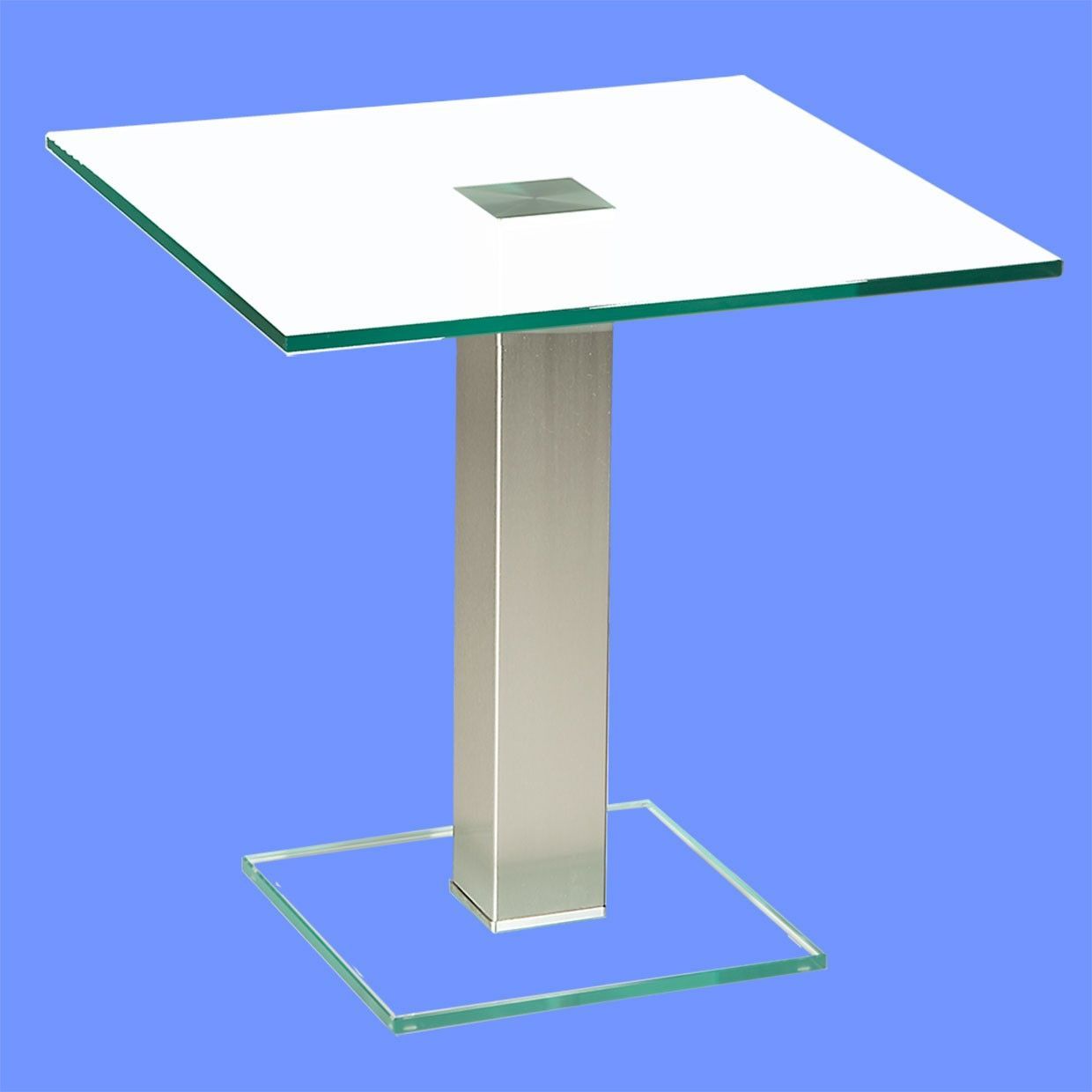 BRI-B1H Beistelltisch rund/ quadratisch Glas 50cm Höhe Säule echt Edelstahl ab Werk