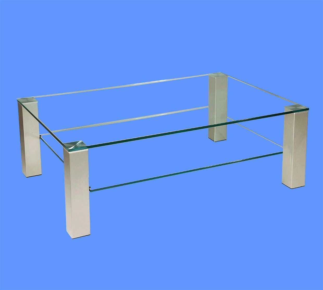 BRI-C1 Couchtisch Glas mit/ ohne Ablage Rollen. Stollen echt Edelstahl direkt AB WERK