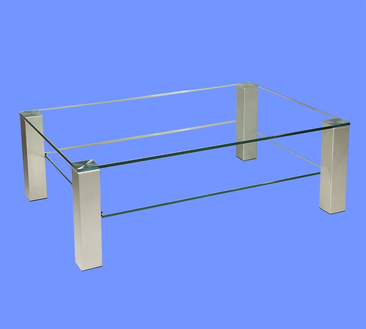 BRI1051 Couchtisch Klarglas 120x80x42cm Klarglasablage Edelstahlstollen mit Rollen