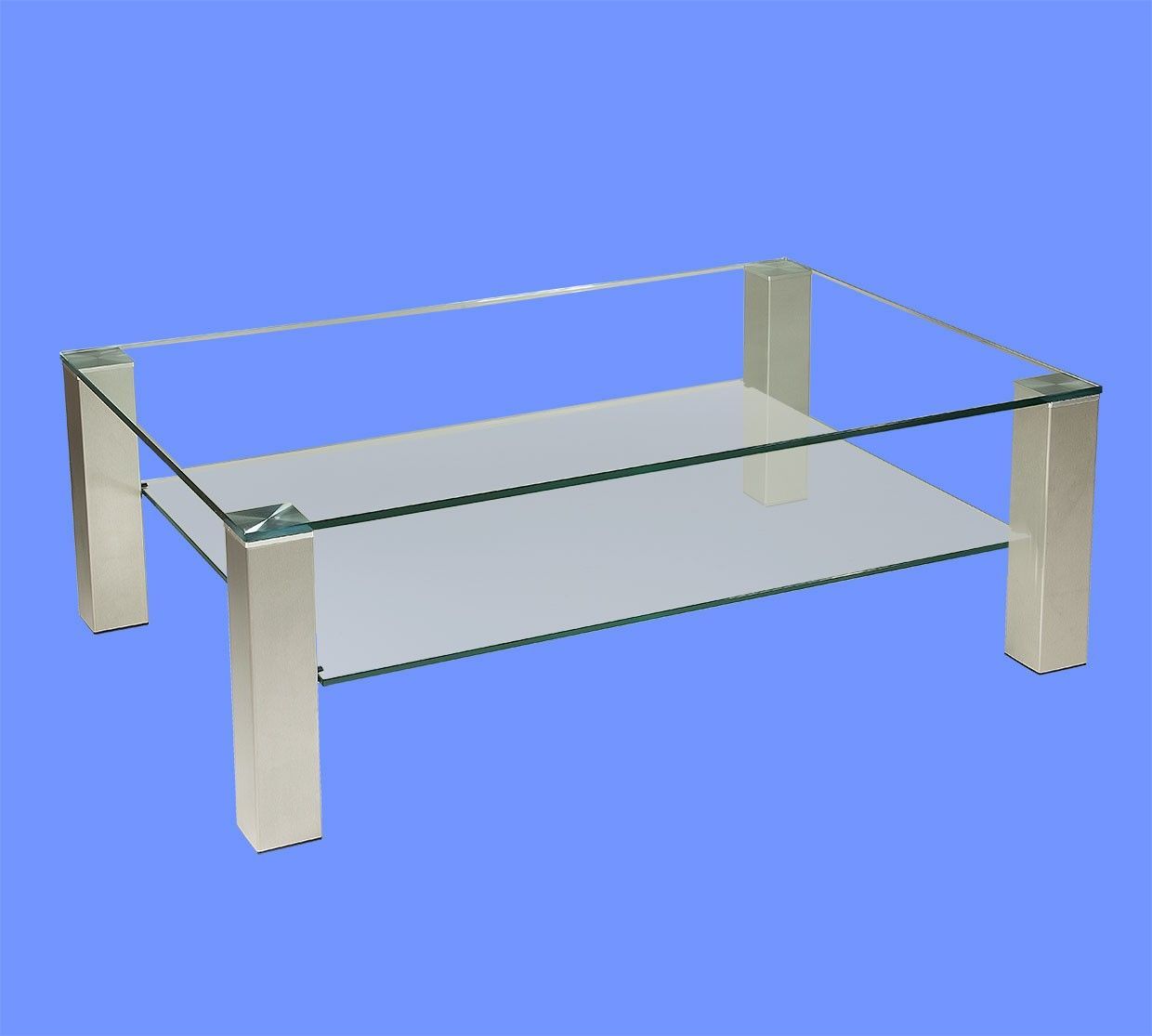 BRI1059 Couchtisch Klarglas 120x80x49cm Satinoglas Ablage Edelstahlstollen mit Rollen