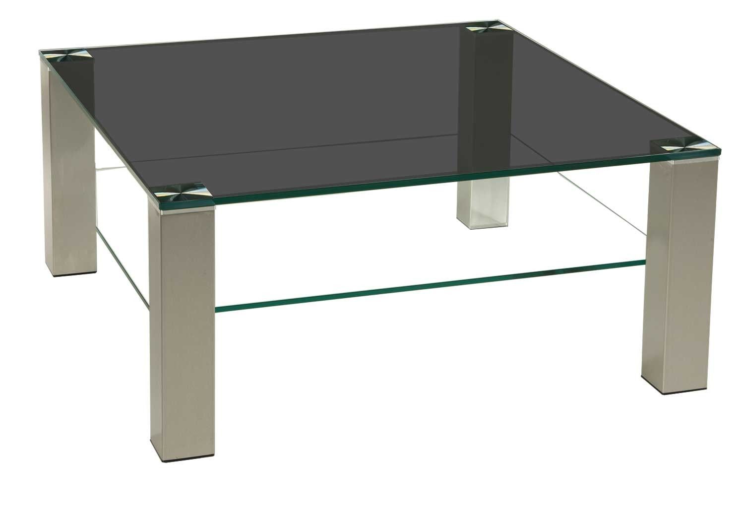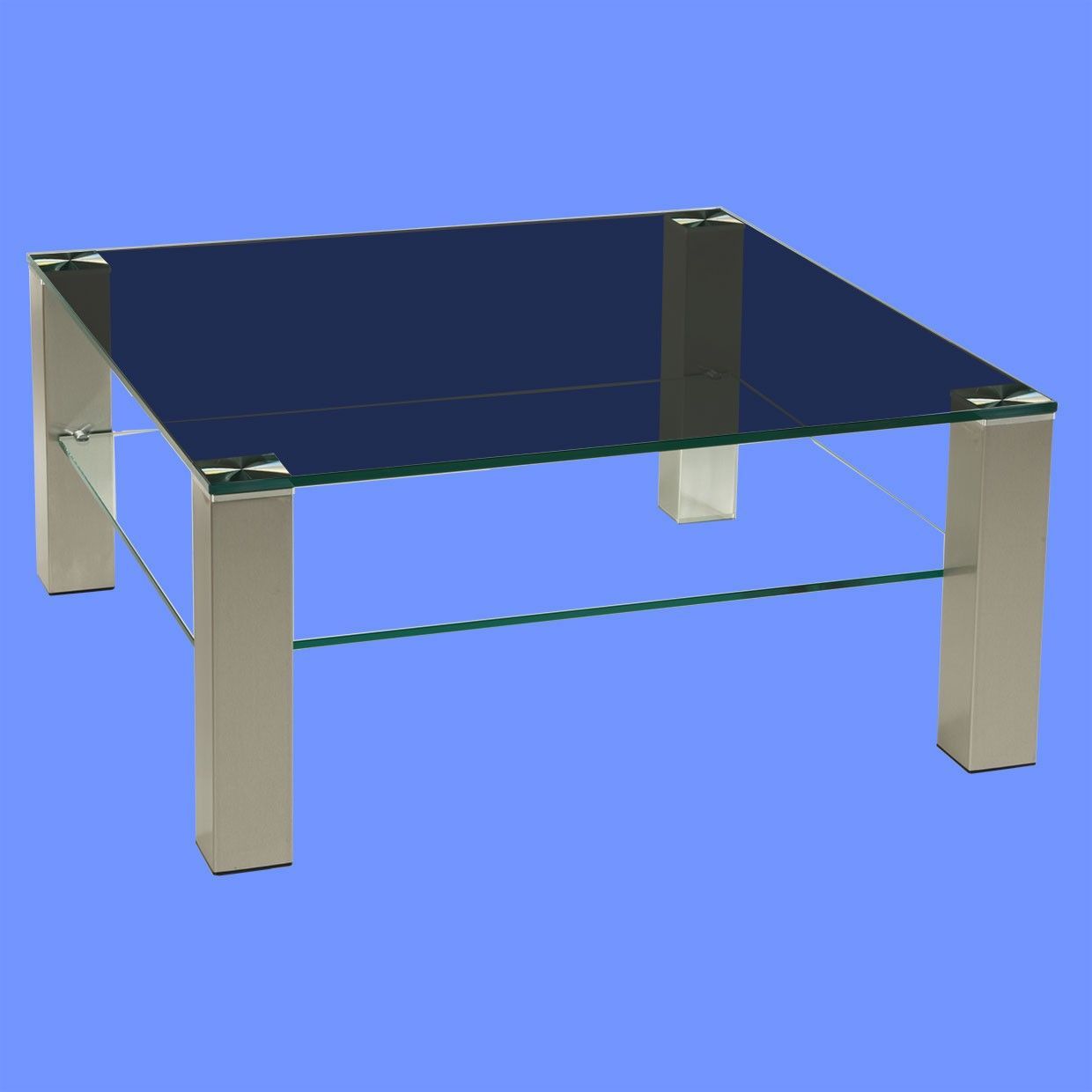 BRI2016 Couchtisch Parsolglas 70x70x49cm Klarglasablage Edelstahlstollen mit Rollen