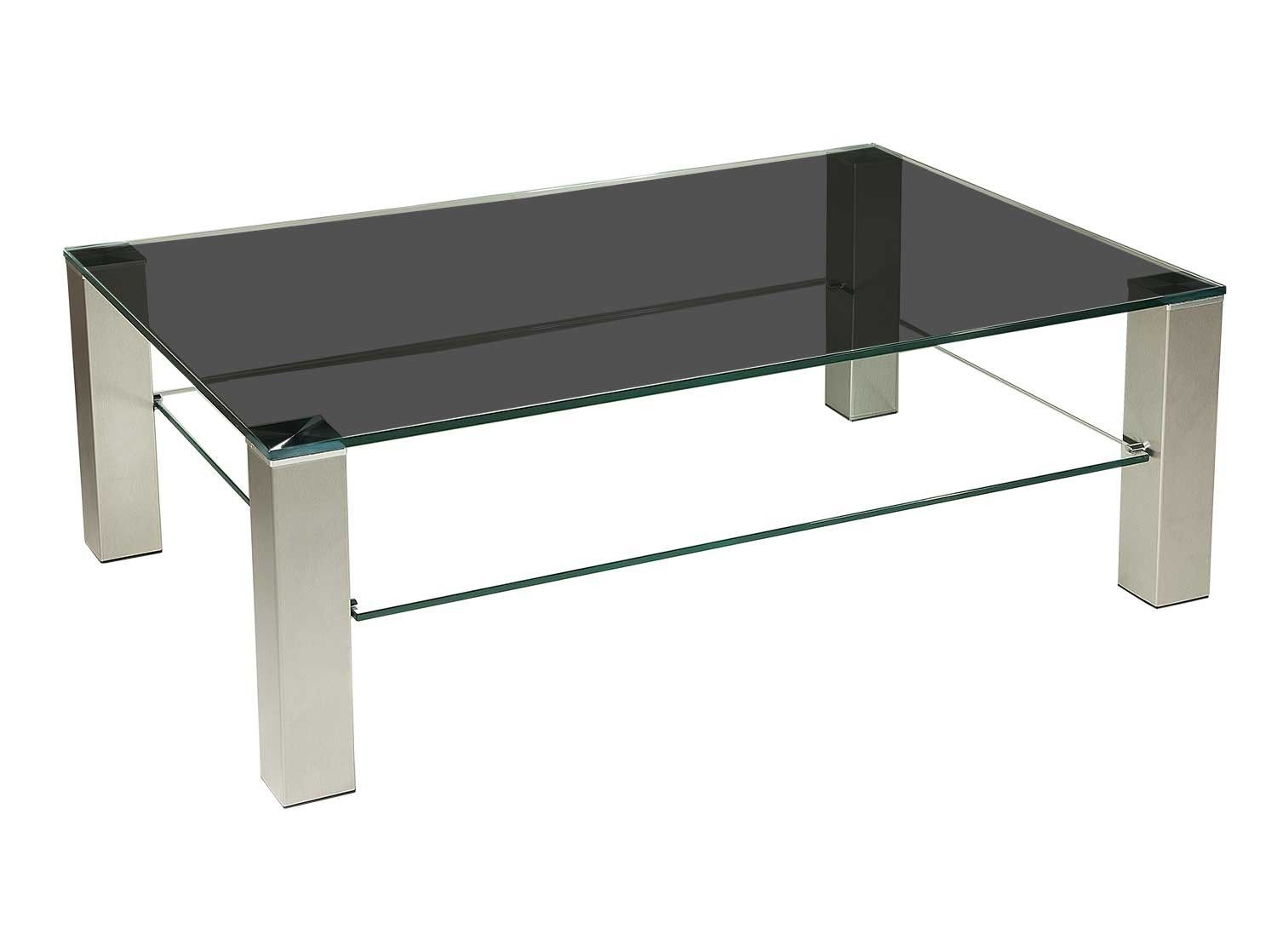 BRI2031 Couchtisch Parsolglas 110x70x42cm Klarglasablage Edelstahlstollen mit Rollen