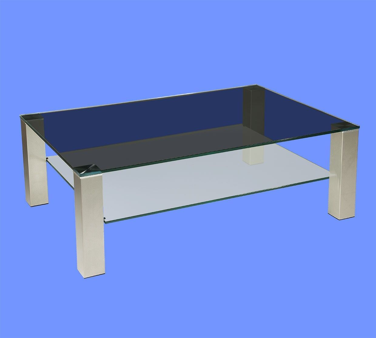 BRI2059 Couchtisch Parsolglas 120x80x49cm Satinoglasablage Edelstahlstollen Rollen