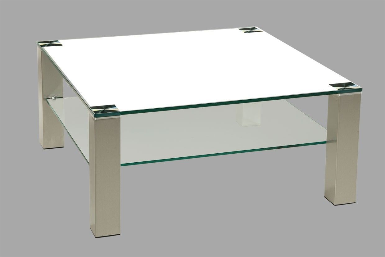 BRI3014 Couchtisch Weißglas 70x70x42cm Satinoglas-Ablage Edelstahlstollen mit Rollen
