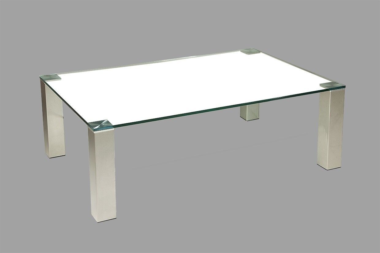 BRI3050 Couchtisch Weißglas 120x80x42cm Edelstahlstollen mit Rollen