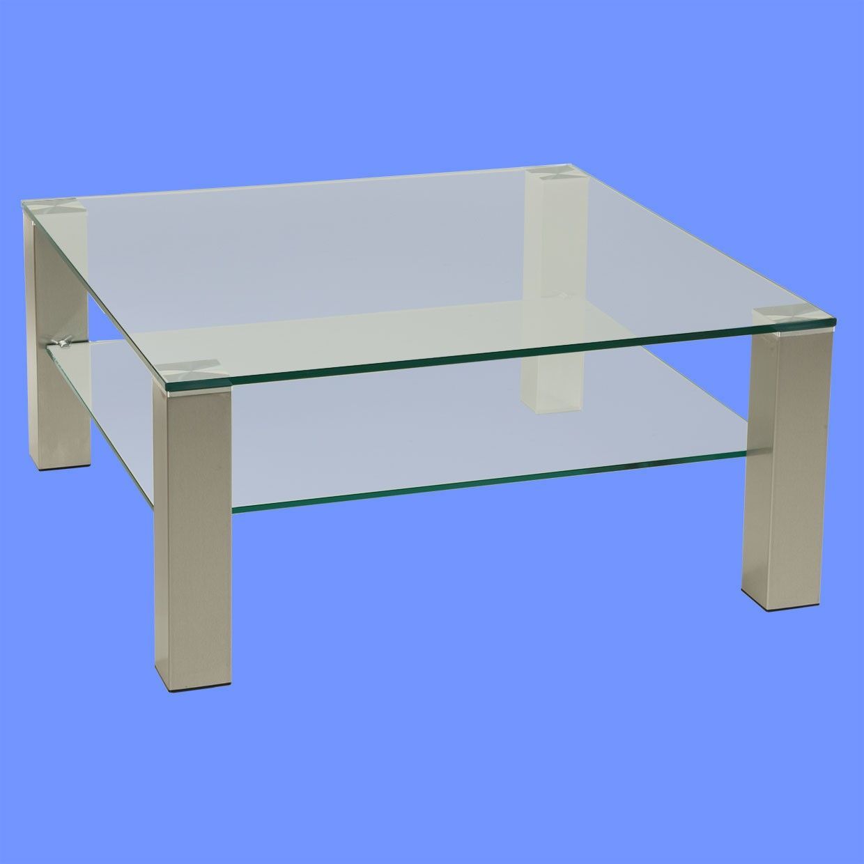 BRI4014 Couchtisch Satinoglas 70x70x42cm Satinoglas-Ablage Edelstahlstollen Rollen