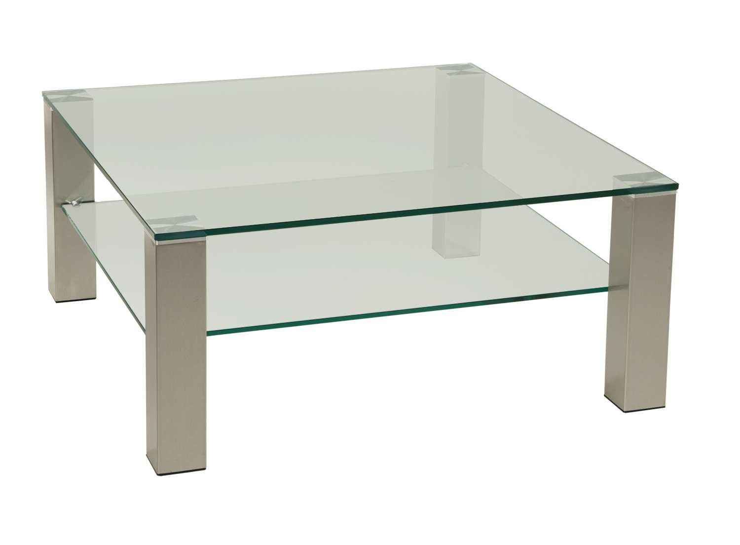 BRI4024 Couchtisch Satinoglas 90x90x42cm Satinoglas-Ablage Edelstahlstollen Rollen