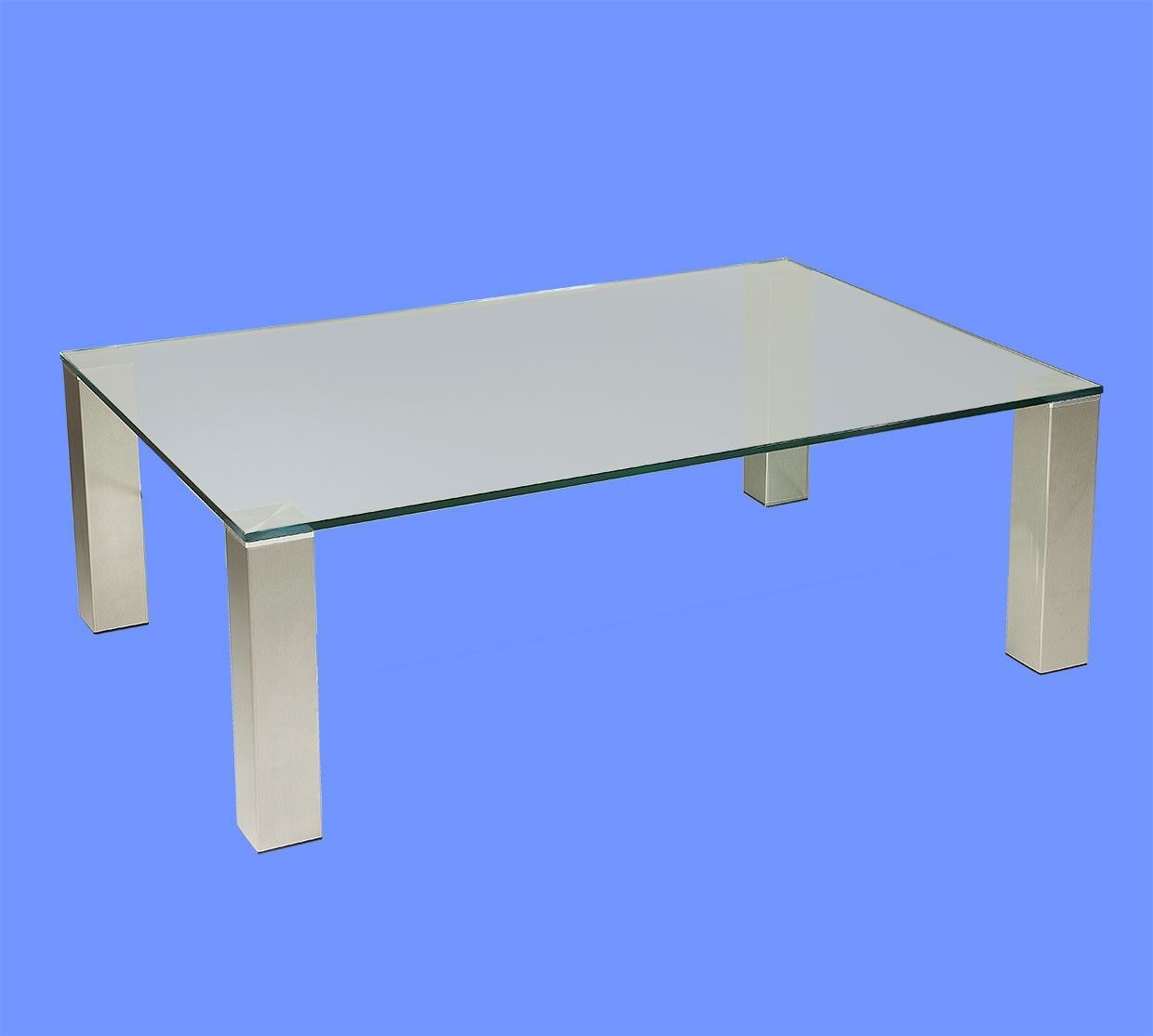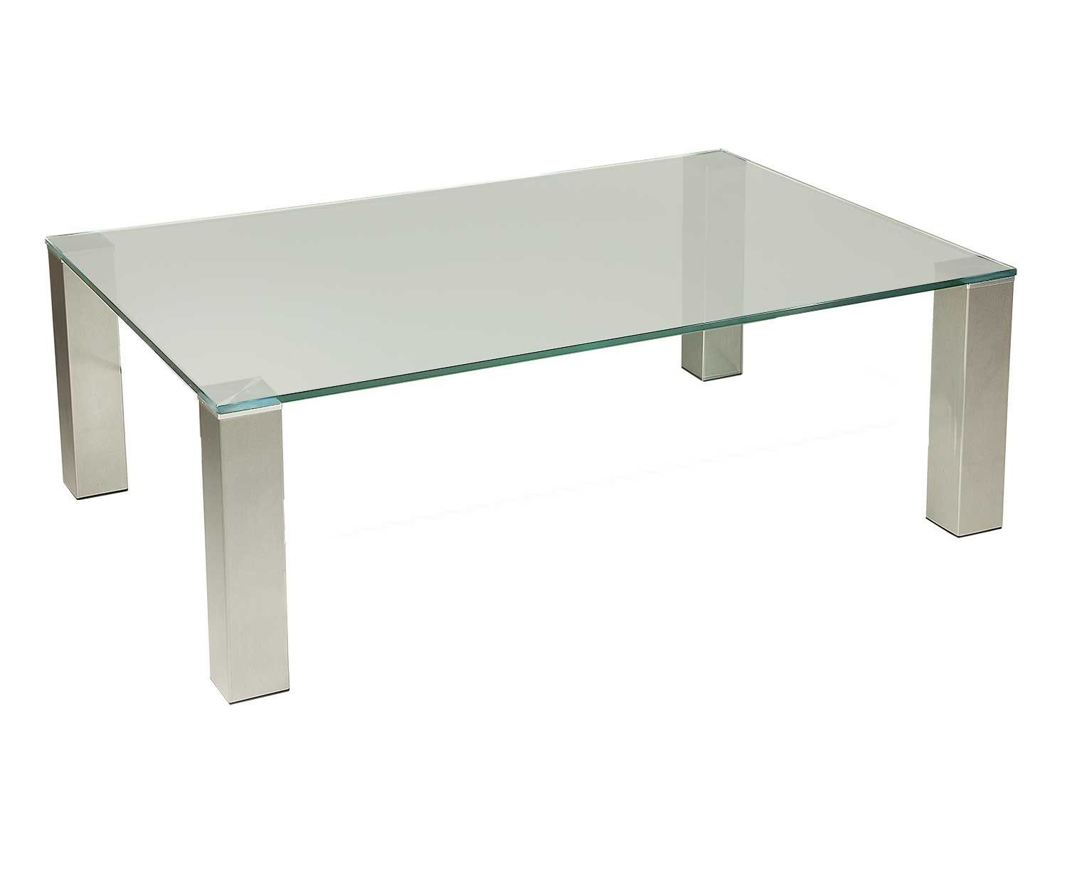 BRI4030 Couchtisch Satinoglas 110x70x42cm Edelstahlstollen mit Rollen