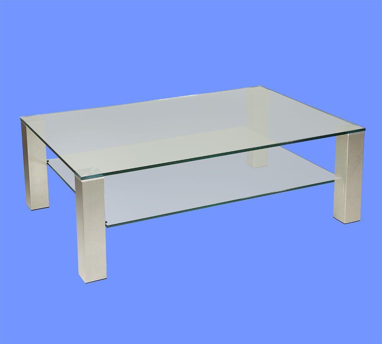 BRI4059 Couchtisch Satinoglas 120x80x49cm Satinoglasablage Edelstahlstollen Rollen