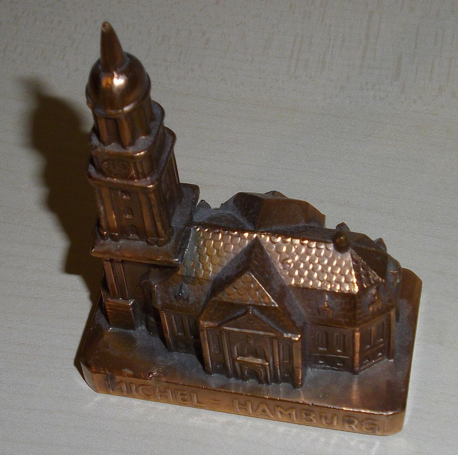 Brief-Beschwerer aus Hamburg um1930 . Material: Kupferguss mit Filz-Unterseite. Inschrift: Michel - Hamburg . Maße: H 11, L 8, B 4 cm. Antikes am Deich - Inh: Oliver Kipp-Trense G M T Sprache erkennen Afrikaans Albanisch Arabisch Armenisch Aserbaidschanisch Baskisch Bengalisch Bosnisch Bulgarisch Bu