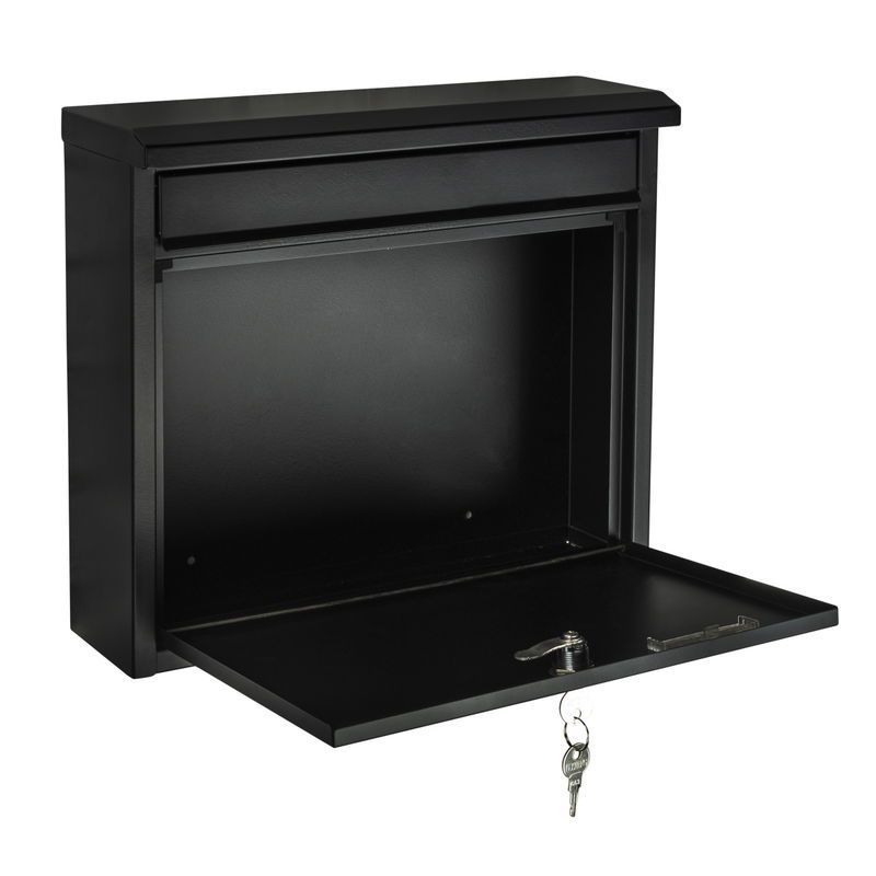 Briefkasten schwarz, Metall, Postkasten mit Schlüssel und Namensschild