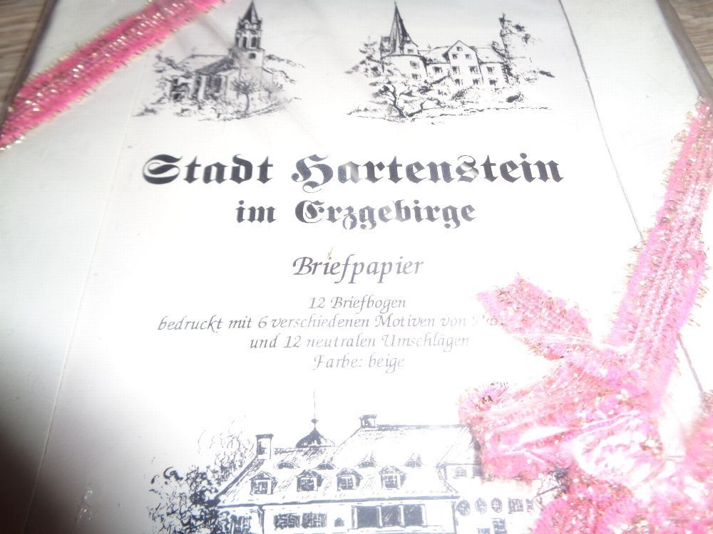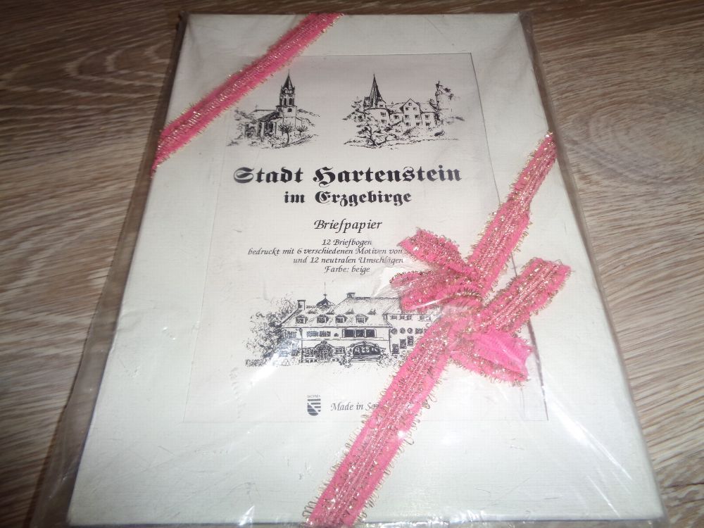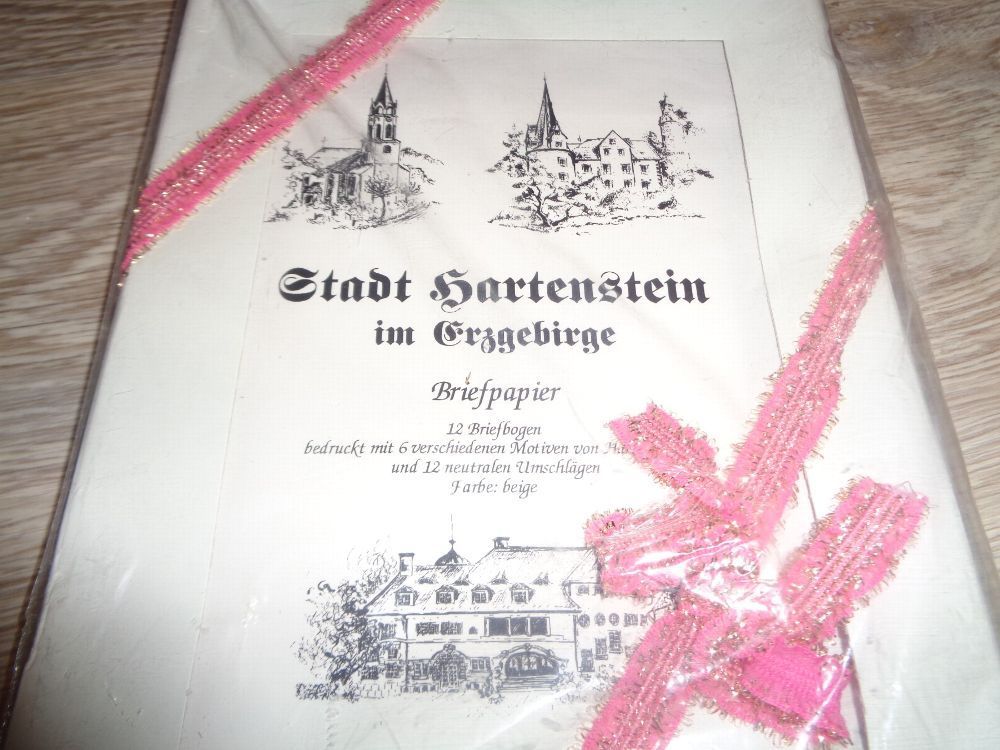 Biete in dieser Auktion an: Briefpapier Stadt Hartenstein im Erzgebirge 12 Briefbogen bedruckt mit 6 verschiedenen Motiven von Hartenstein und 12 neutralen Umschlägen Original verpackt und ungeöffnet Da ich viele weitere Artikel im Angebot habe, schaut einfach mal durch. Vielleicht ist das passende