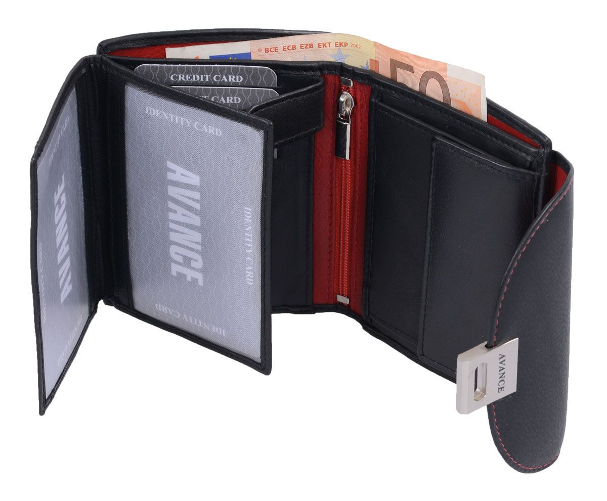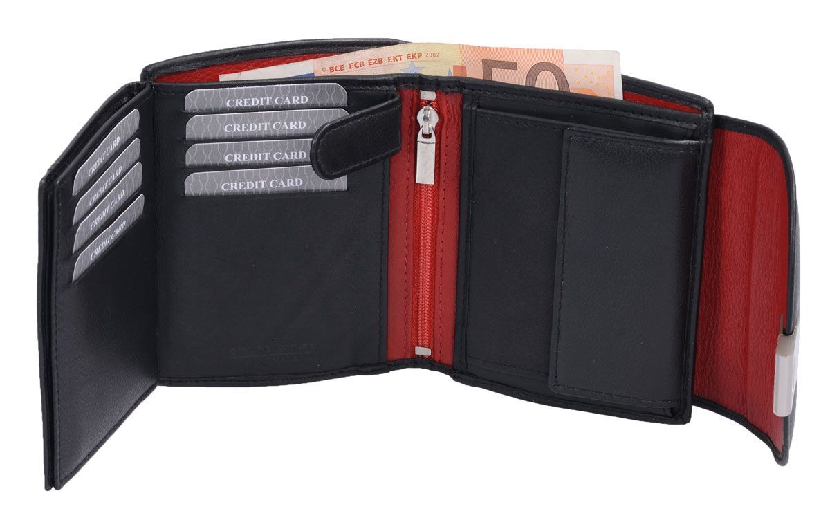 Brieftasche, Leder, schwarz mit roter Naht, Sicherheitsriegel