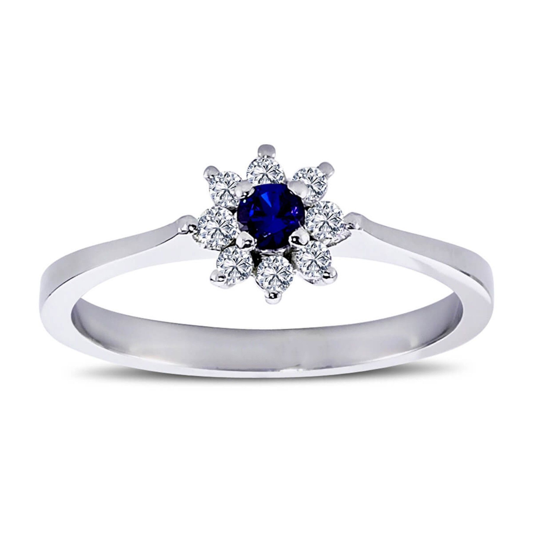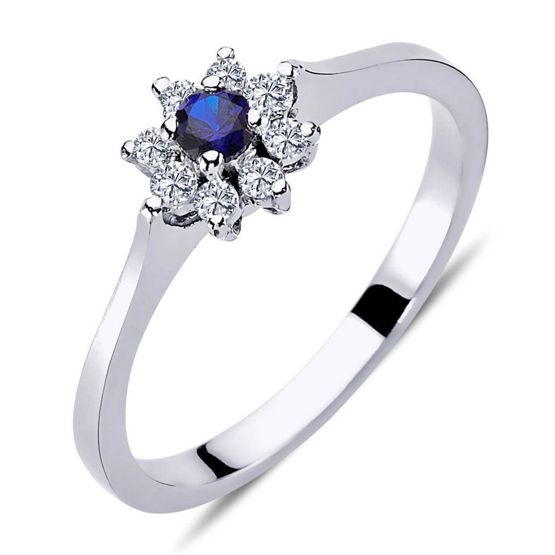 Brillant Schliff Diamant Saphir Entourage Vintage Style Ring in 14 Karat Weißgold