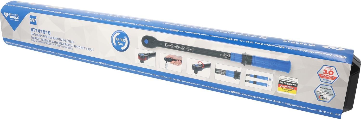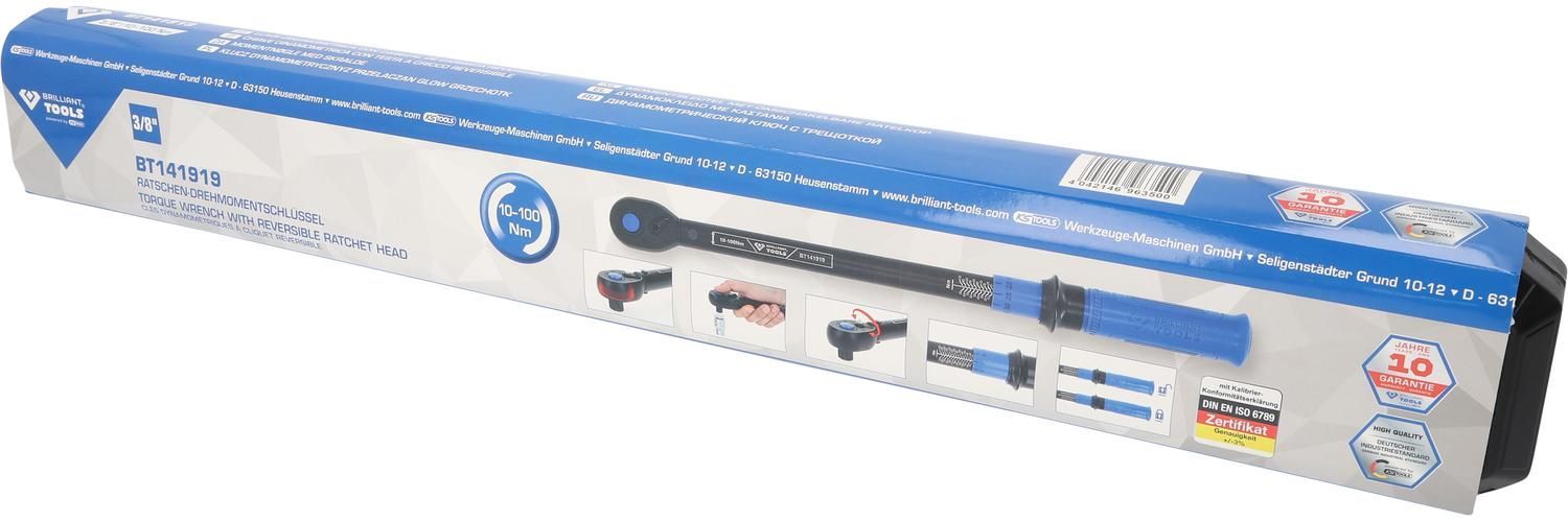 Brilliant Tools 3/8" Ratschen-Drehmomentschlüssel umschaltbar, 10-100 Nm