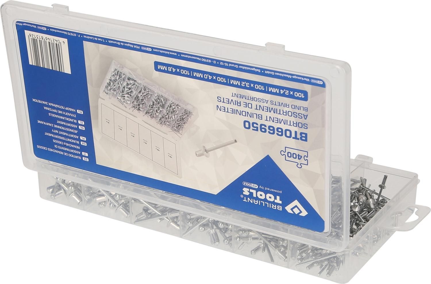 Brilliant Tools Sortiment Blindnieten, 400-tlg, 2,4 - 3,2 - 4 - 4,8 mm