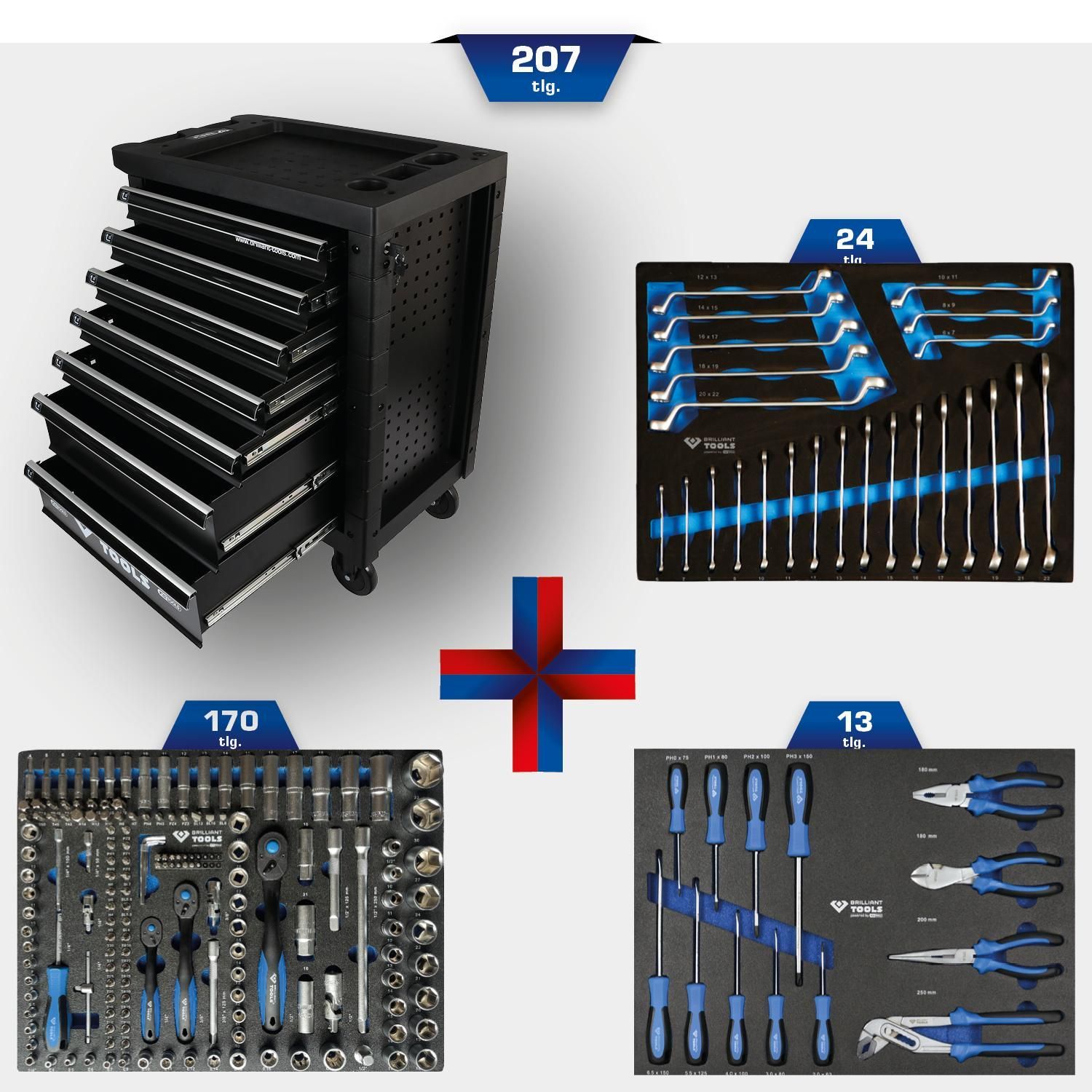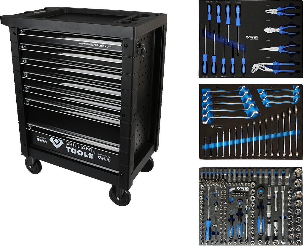 Brilliant Tools Werkstattwagen mit 7 Schubladen und 207 Werkzeugen