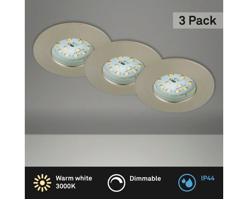 Briloner LED-Leuchtenset, 75 mm, gebürstetes Nickel, 3 Stück