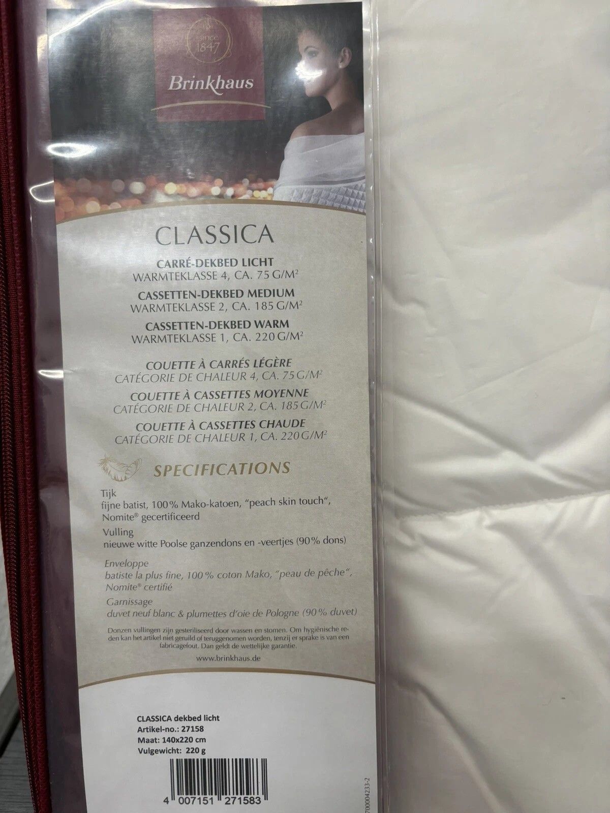 Brinkhaus Brinkhaus Bettdecke Classica Light 75 g/m2 - 140 x 220 cm mit Tasche