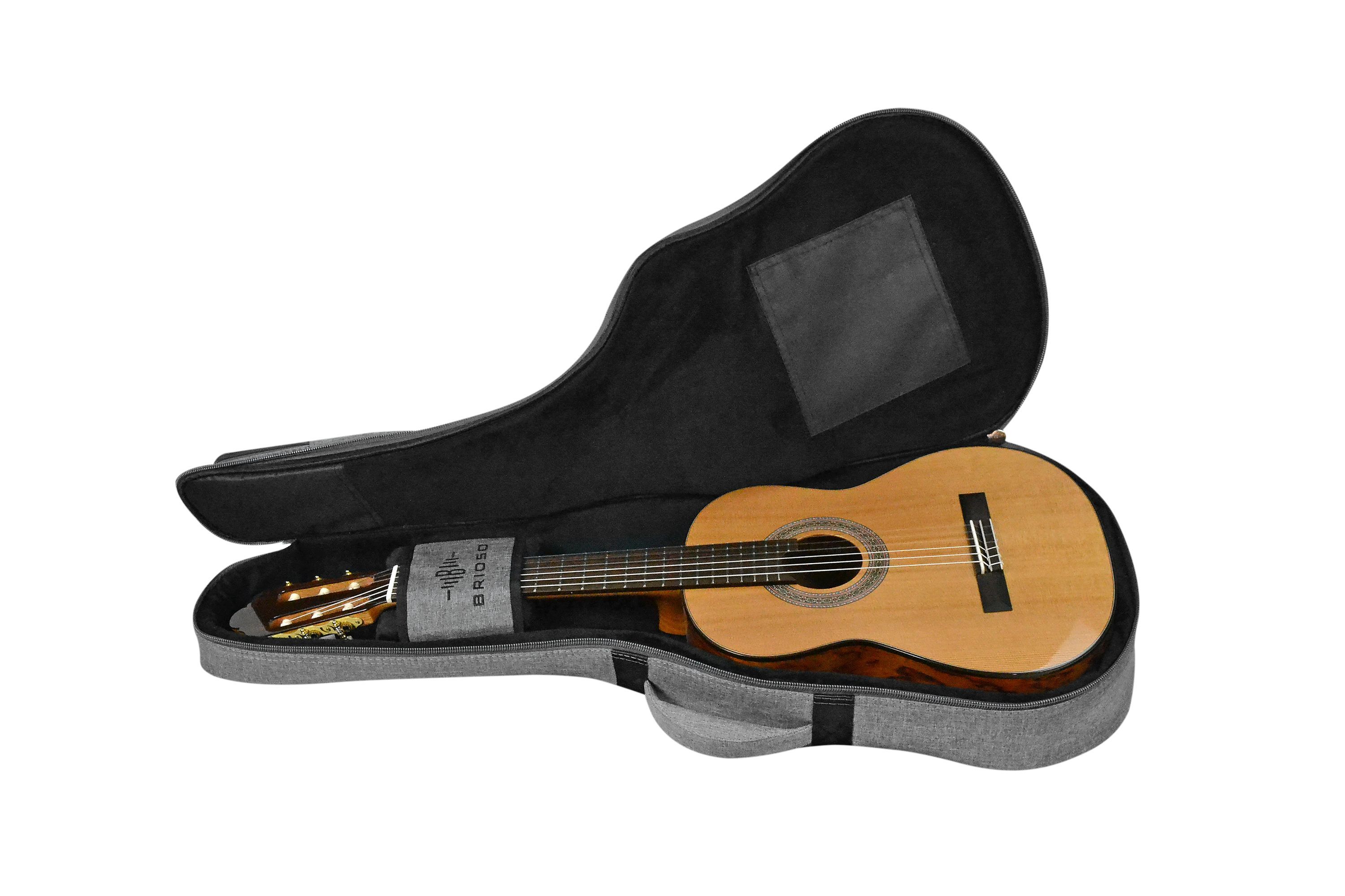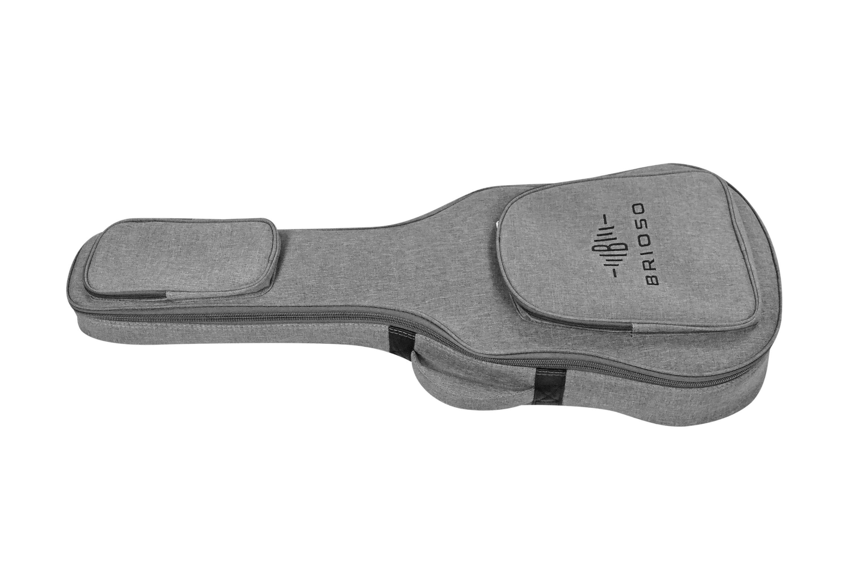 Brioso Premium Gigbag Klassik 3 4 grau Die Kombination aus hochwertigen Materialien wie strapazierfähigem Außenmaterial, schonend-weichem, verstärktem Innenfutter und effektiver, leichter Polsterung sorgt trotz geringen Gewichts für einen zuverlässigen Rundumschutz der Gitarre. Ideal für Musiker, di