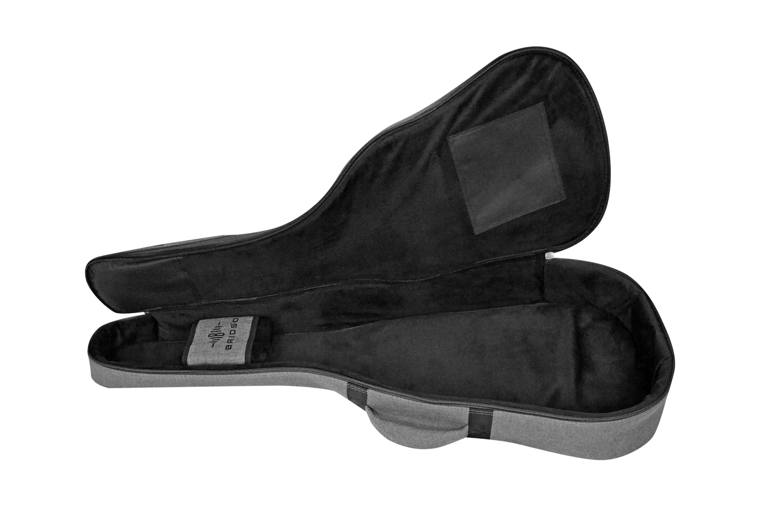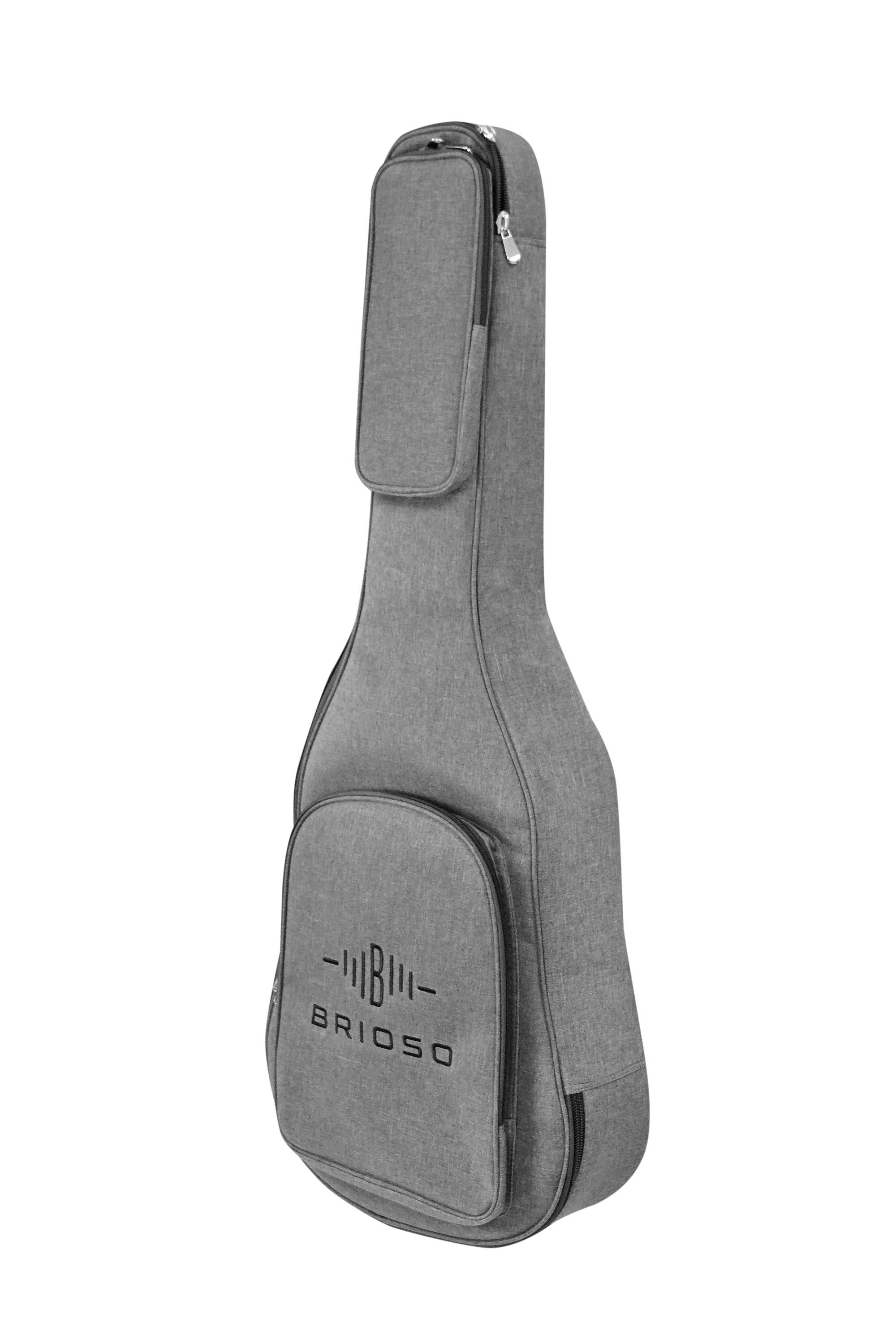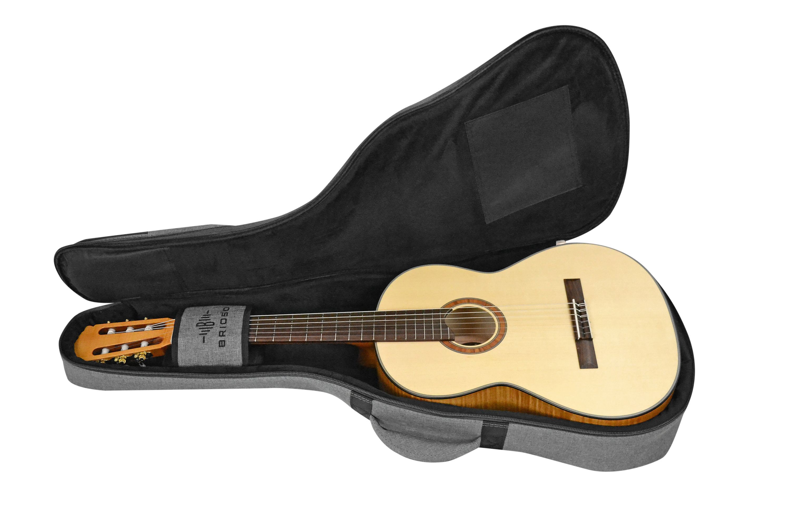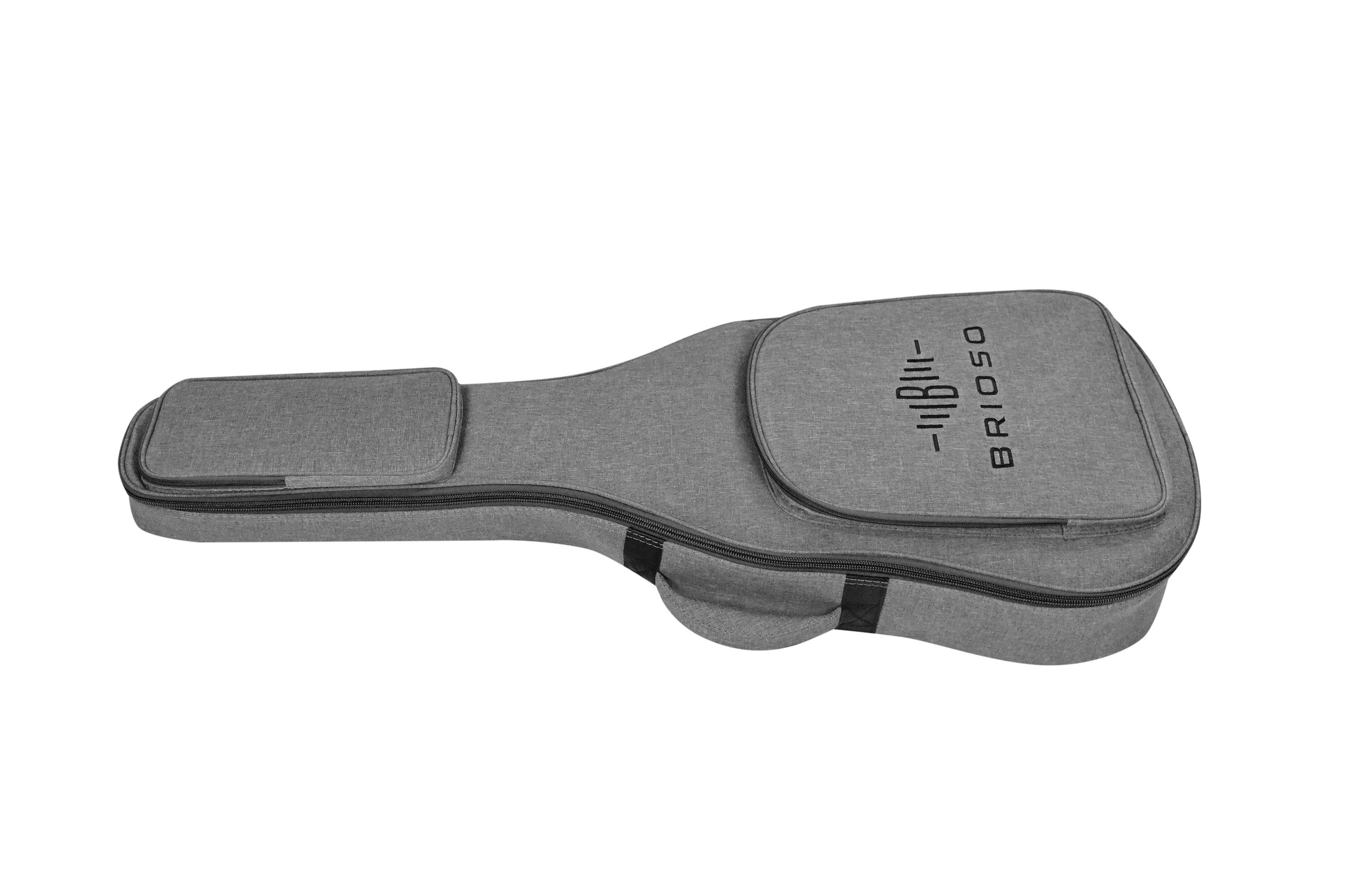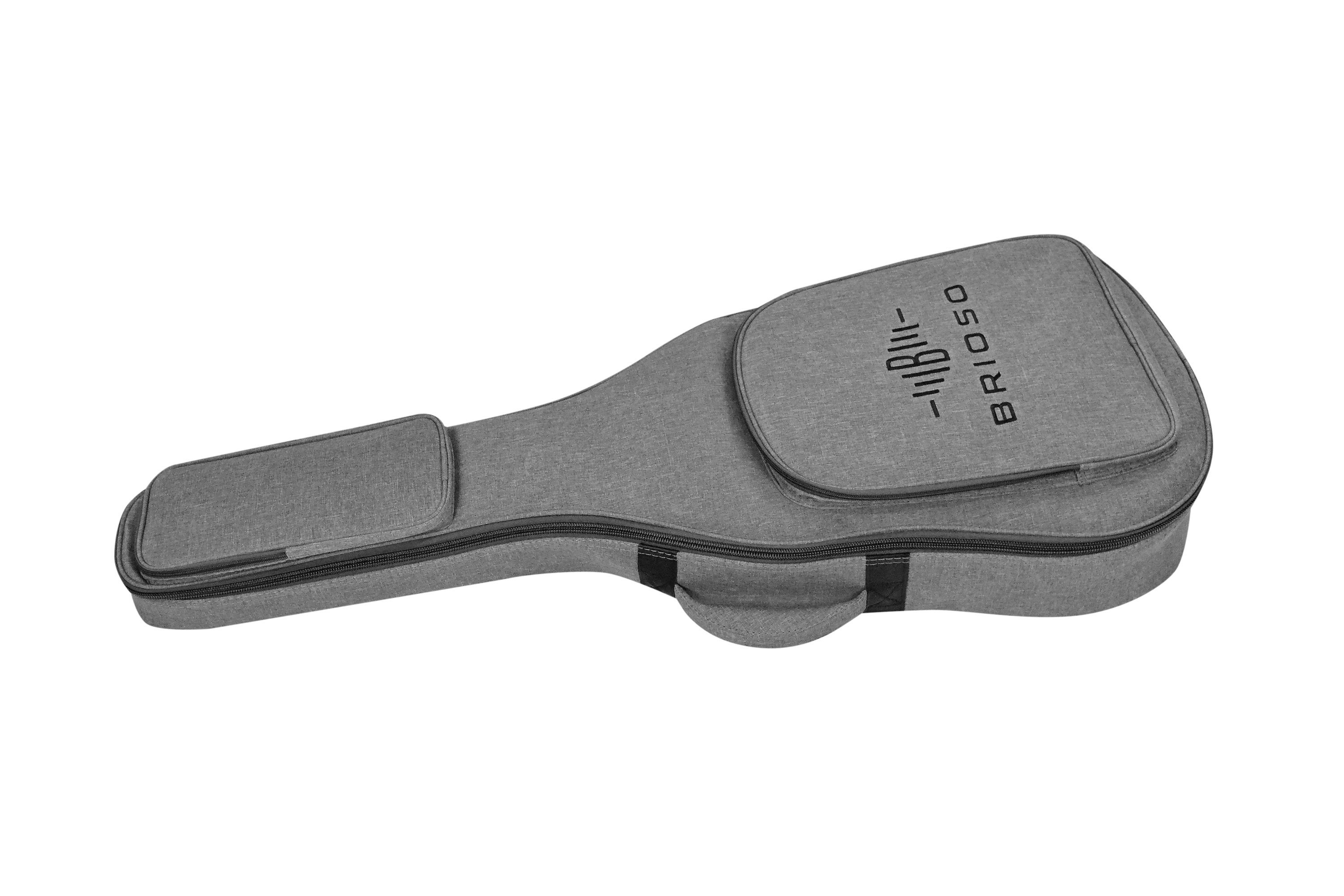 Brioso Premium Gigbag Klassik 4 4 grau Die Kombination aus hochwertigen Materialien wie strapazierfähigem Außenmaterial, schonend-weichem, verstärktem Innenfutter und effektiver, leichter Polsterung sorgt trotz geringen Gewichts für einen zuverlässigen Rundumschutz der Gitarre. Ideal für Musiker, di