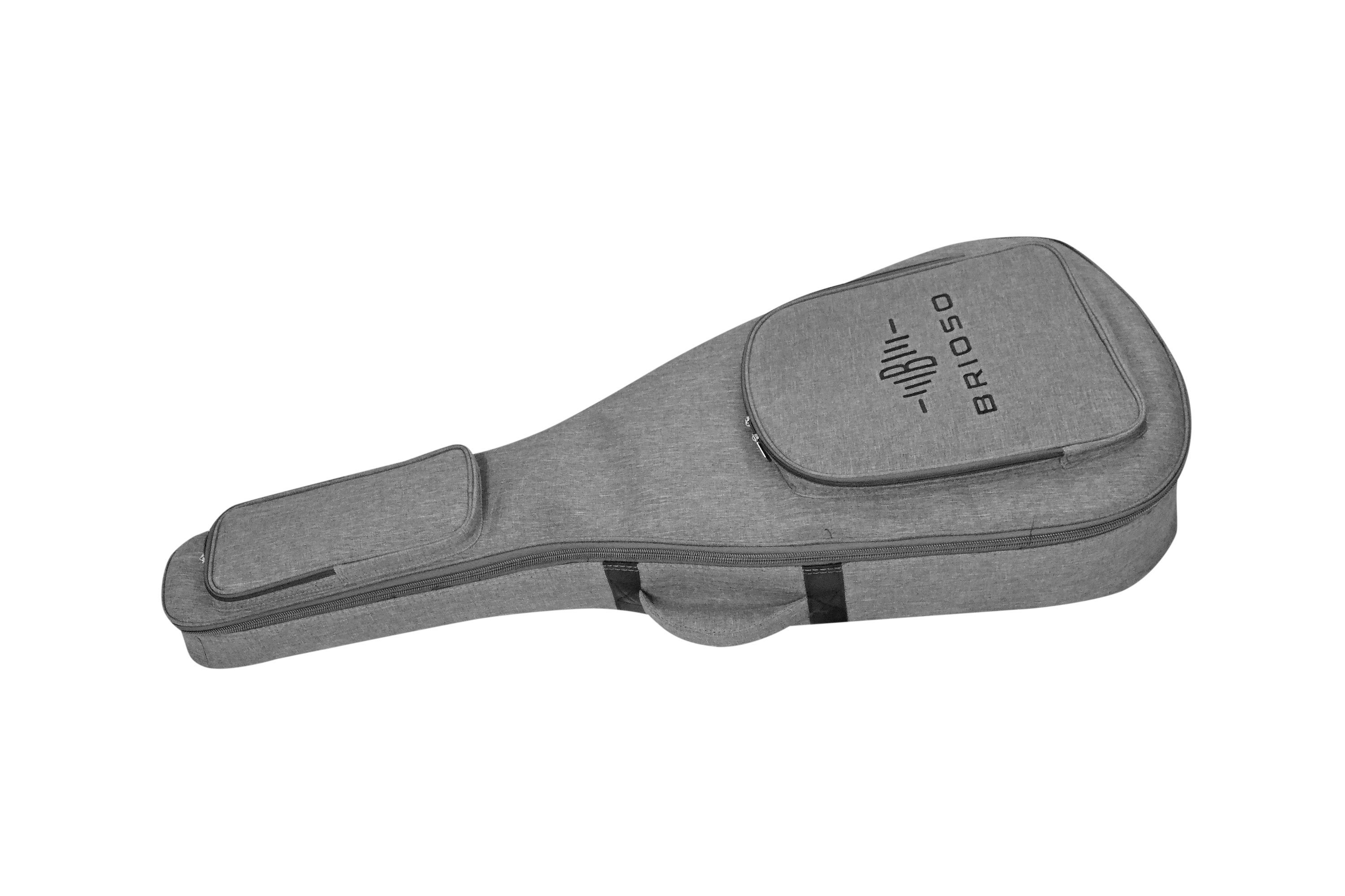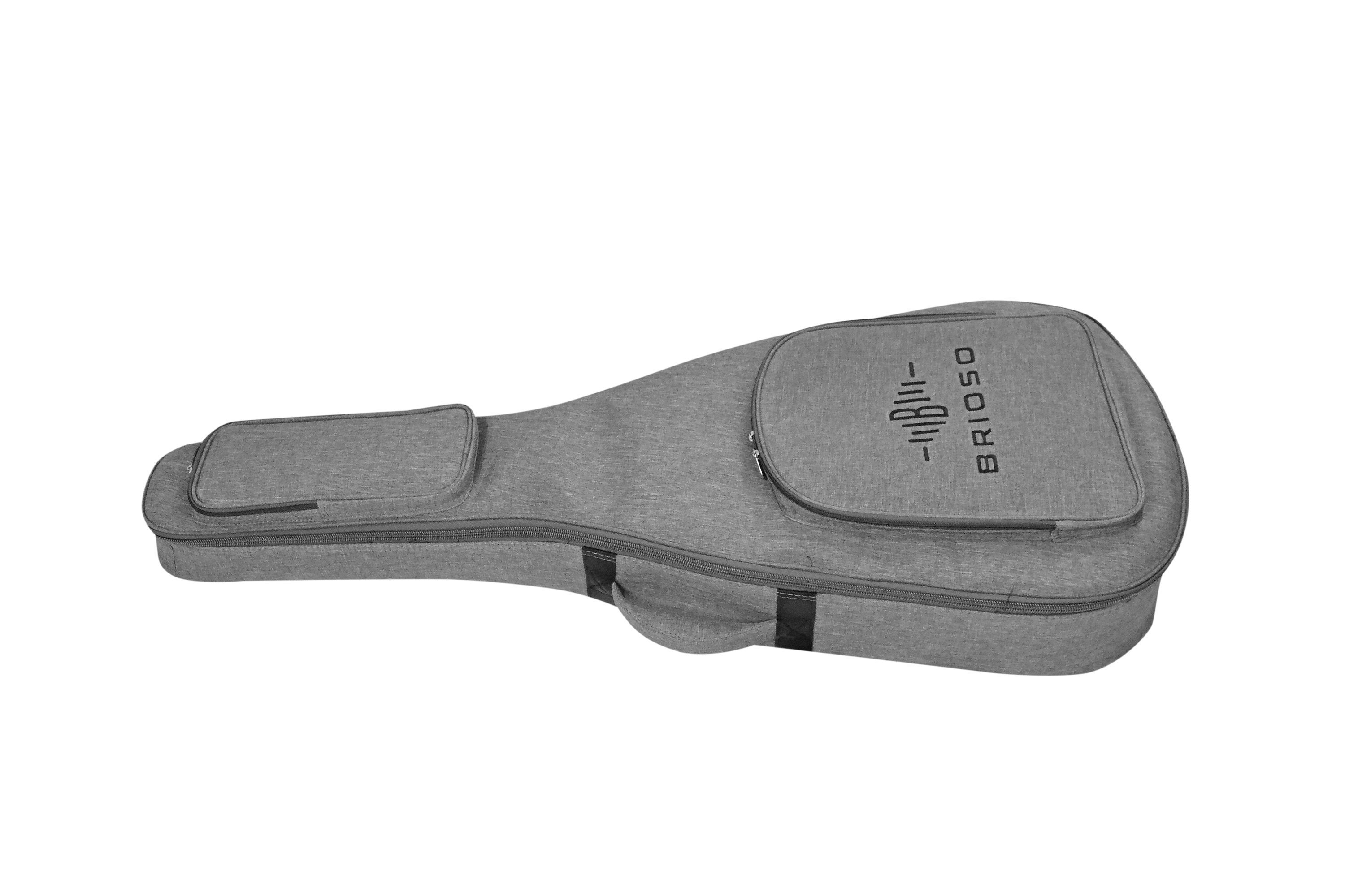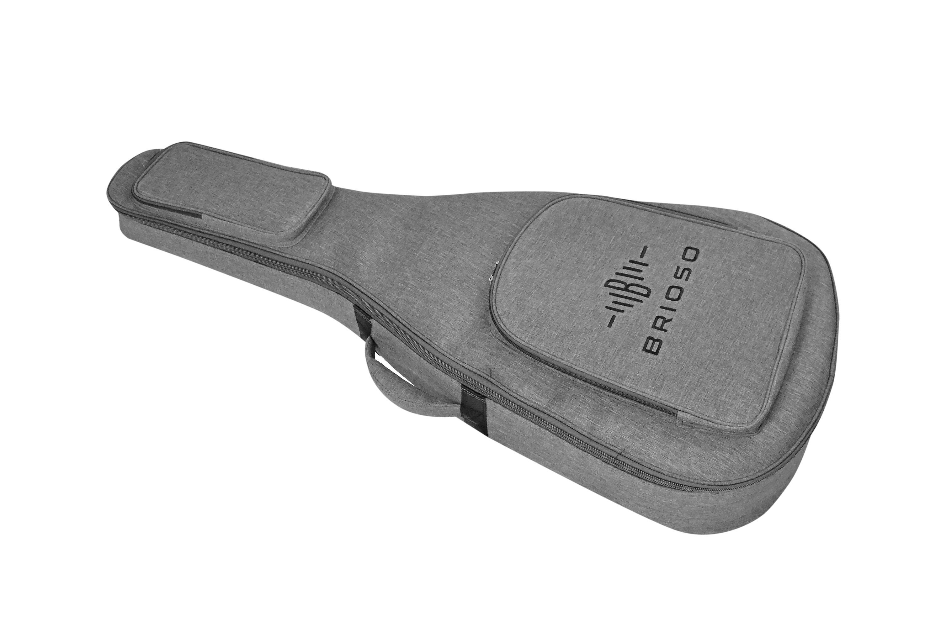 Brioso Premium Gigbag Westerngitarre Dreadnought Grand Auditorium grau Die Kombination aus hochwertigen Materialien wie strapazierfähigem Außenmaterial, schonend-weichem, verstärktem Innenfutter und effektiver, leichter Polsterung sorgt trotz geringen Gewichts für einen zuverlässigen Rundumschutz de