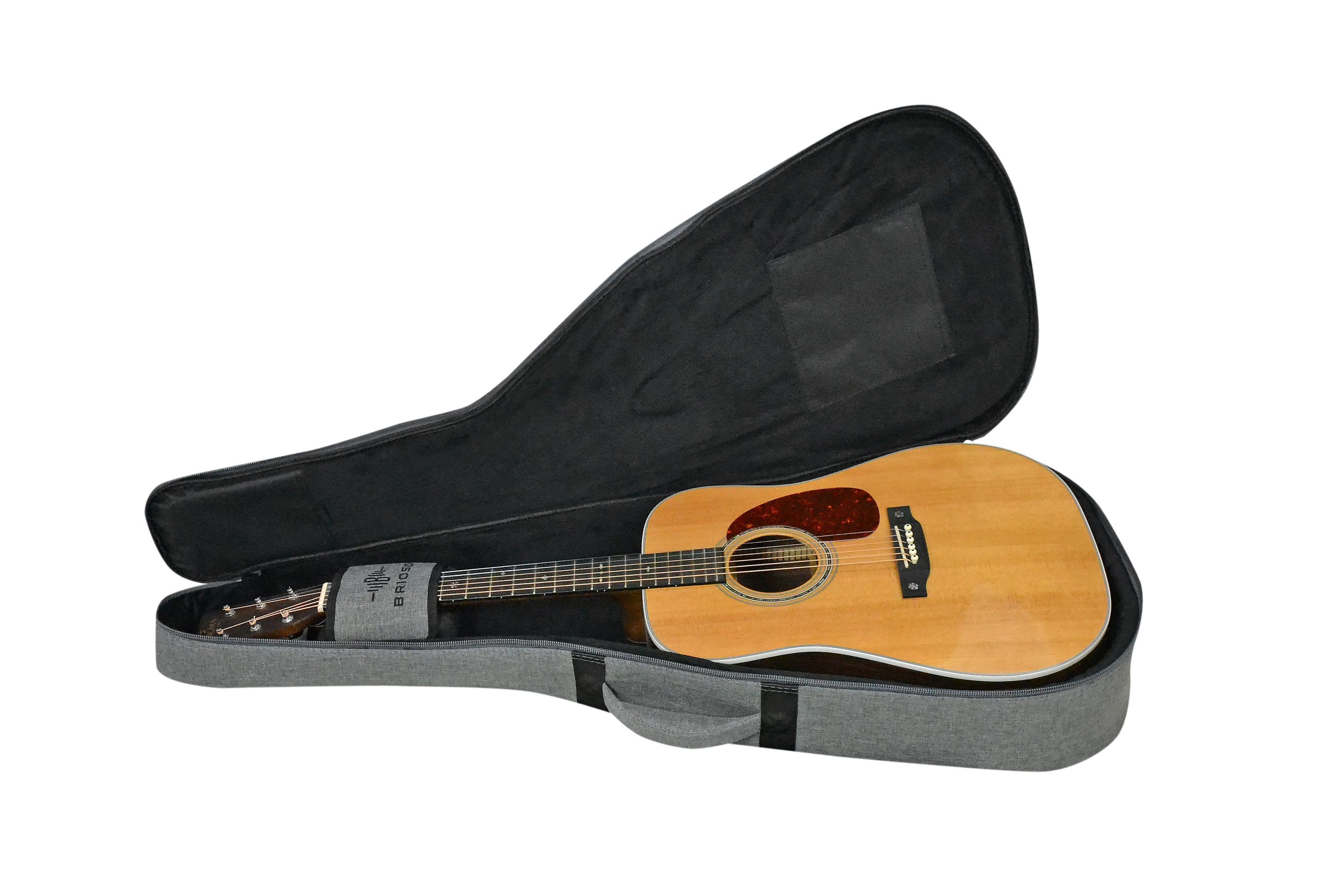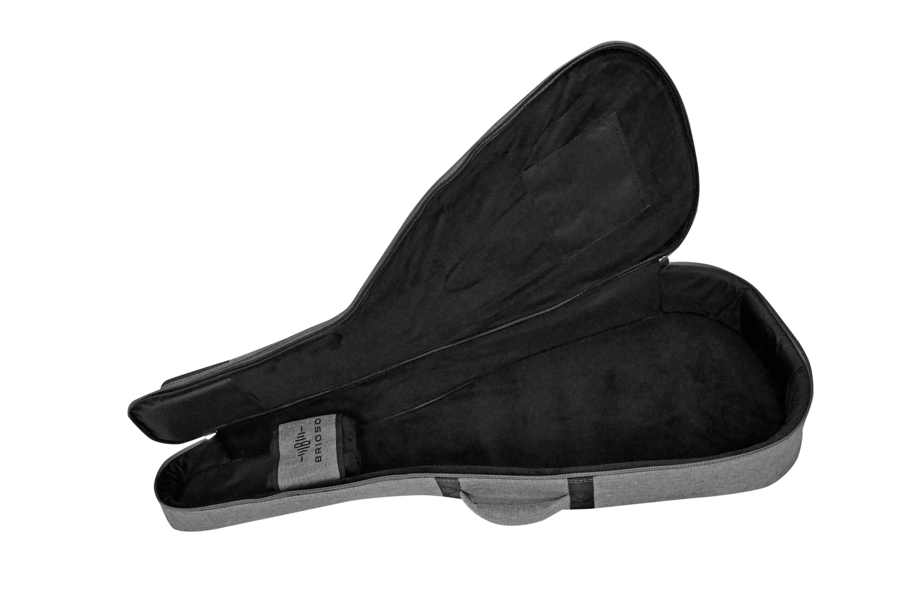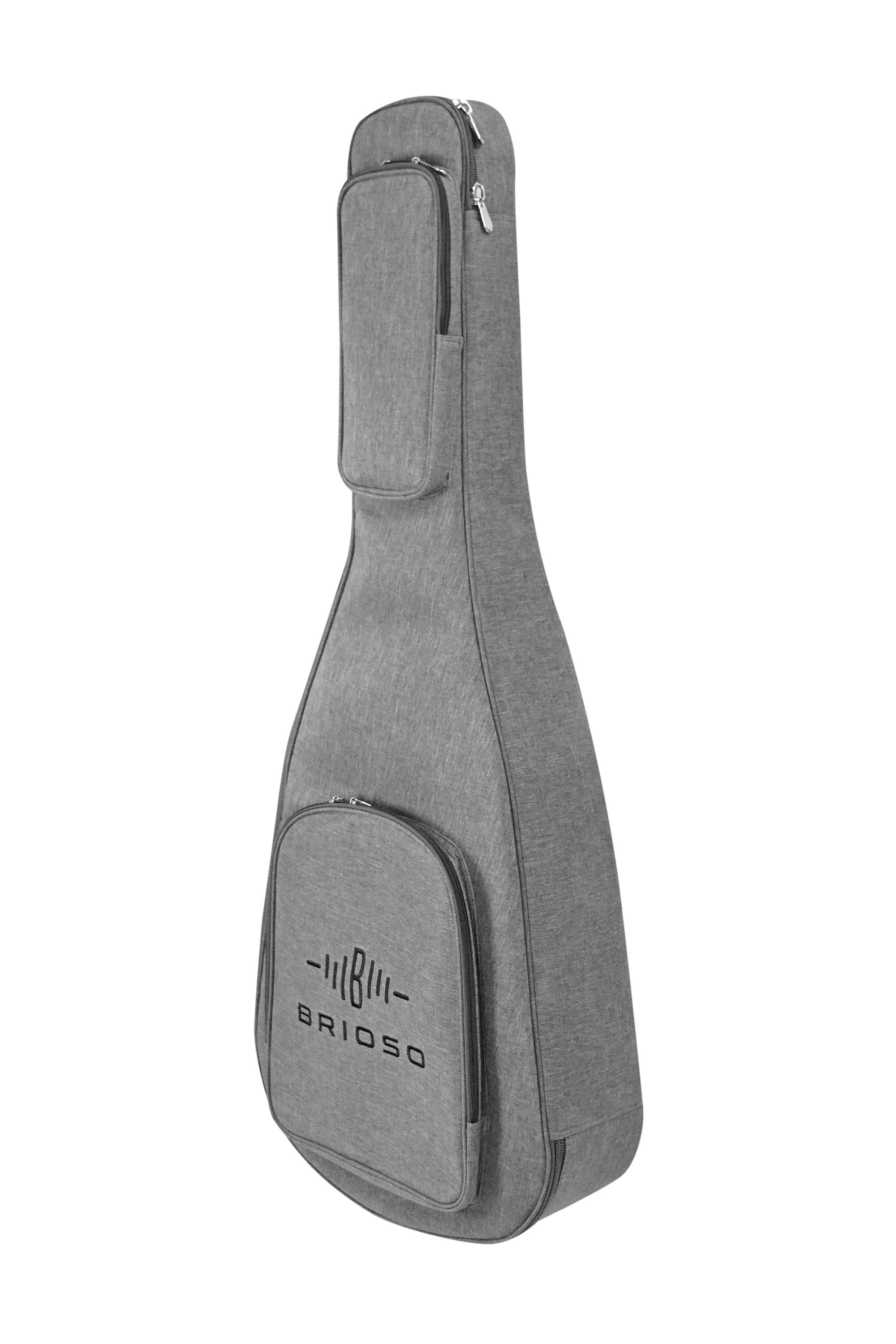 Brioso Premium Gigbag Westerngitarre Dreadnought Grand Auditorium grau Die Kombination aus hochwertigen Materialien wie strapazierfähigem Außenmaterial, schonend-weichem, verstärktem Innenfutter und effektiver, leichter Polsterung sorgt trotz geringen Gewichts für einen zuverlässigen Rundumschutz de