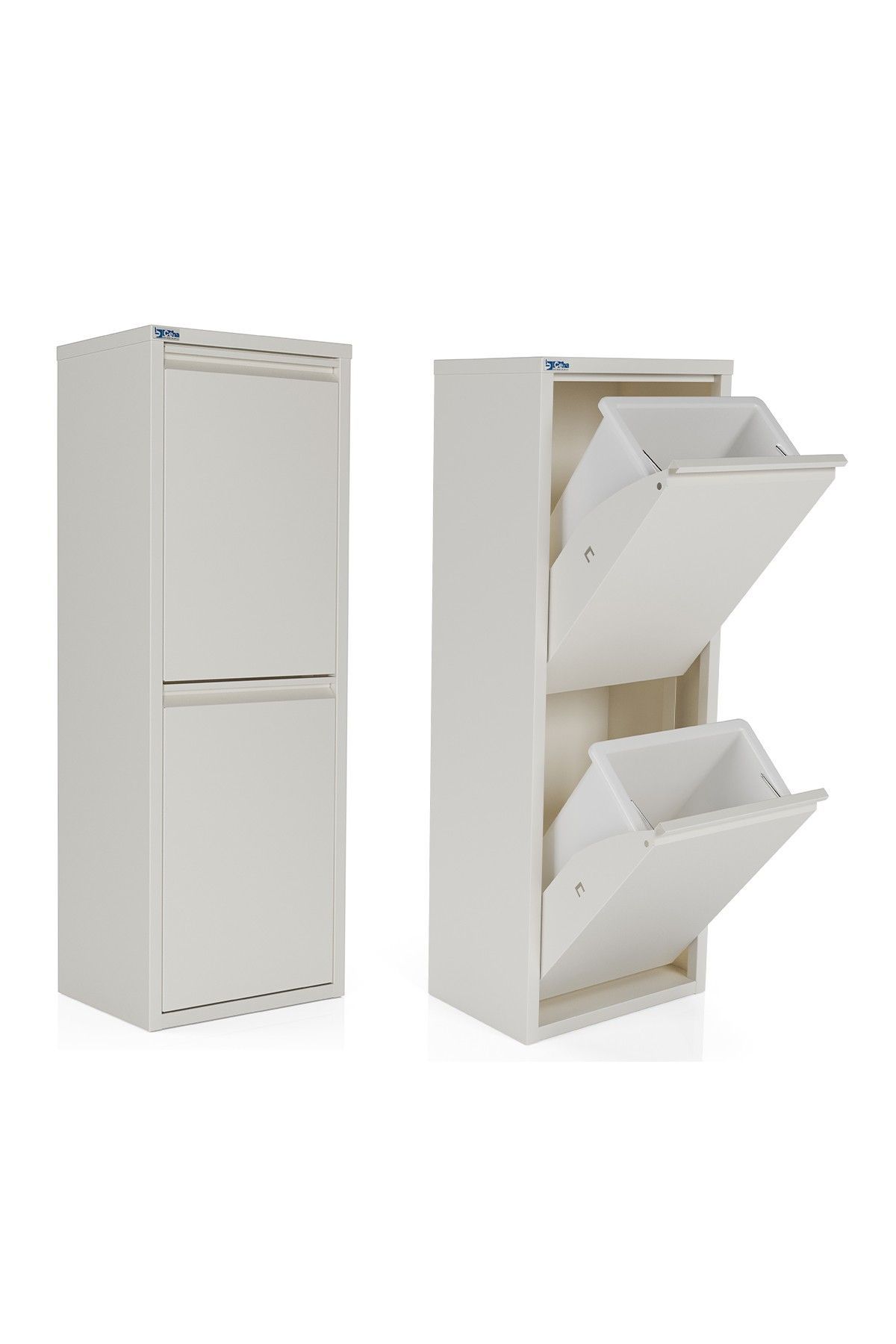 Bristol Mülleimer Mülltrenner Abfalleimer aus Metall 2-türig 2x15L Weiß
