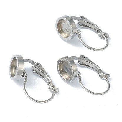 Brisur-Ohrringe Edelstahl Flat Rund Fassung für Cabochon 8mm