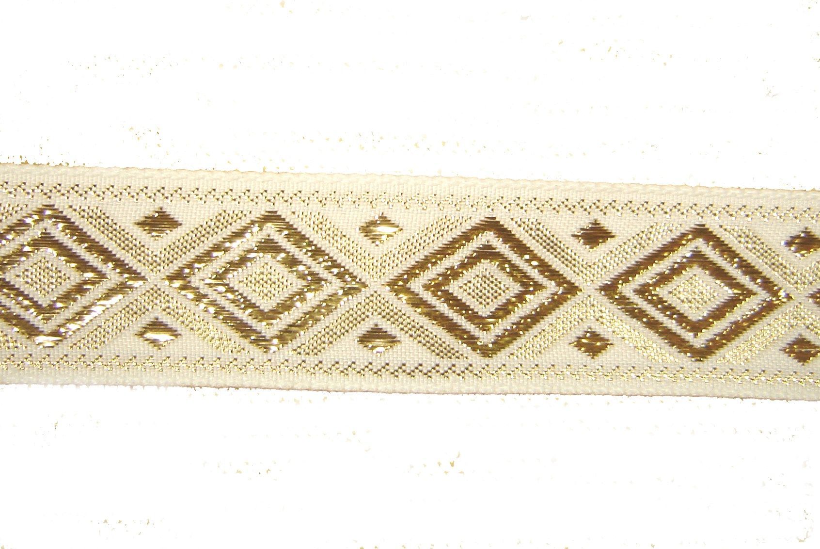 . hochwertiges Webband Brokatband wunderbare Qualität mit geometrischem Muster , weiß und goldglitzernd das Webbandband ist 2,3 cm breit ausgezeichnete Verarbeitung , deutsche Herstellung aus Auflösung unserer Lagerbestände . Bitte sehen Sie sich hier alle meine anderen Artikel an . . Hut Hüte Huete