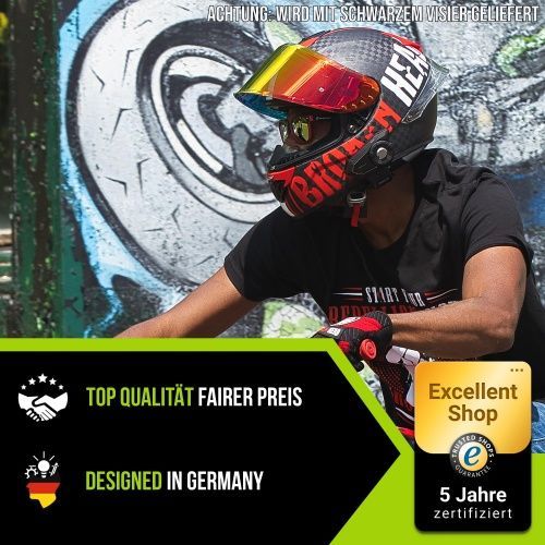 Broken Head Integralhelm BeProud Race Pro Carbon Rot + Schwarzes Visier