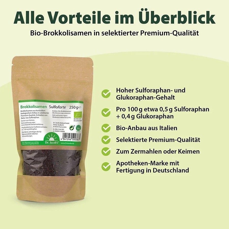 Brokkolisamen Sulfoforte BIO 250 g, ganze Samen, Keimen - Dr. Jacob´s