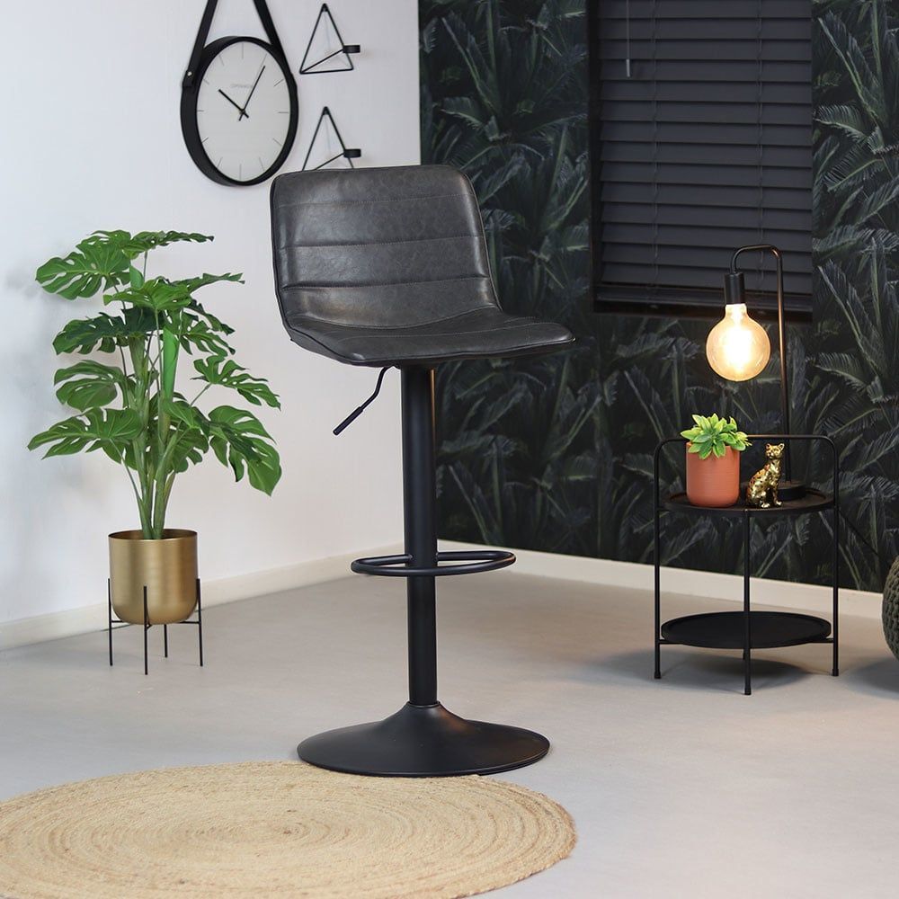 Barhocker Leder Boston höhenverstellbar anthrazit 60-76 cm - 2er Set