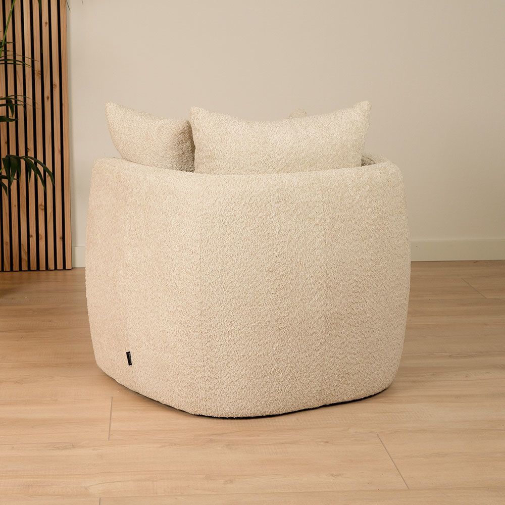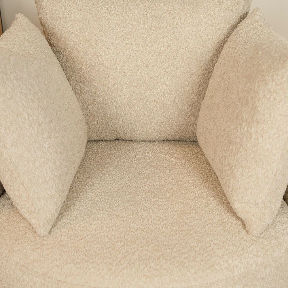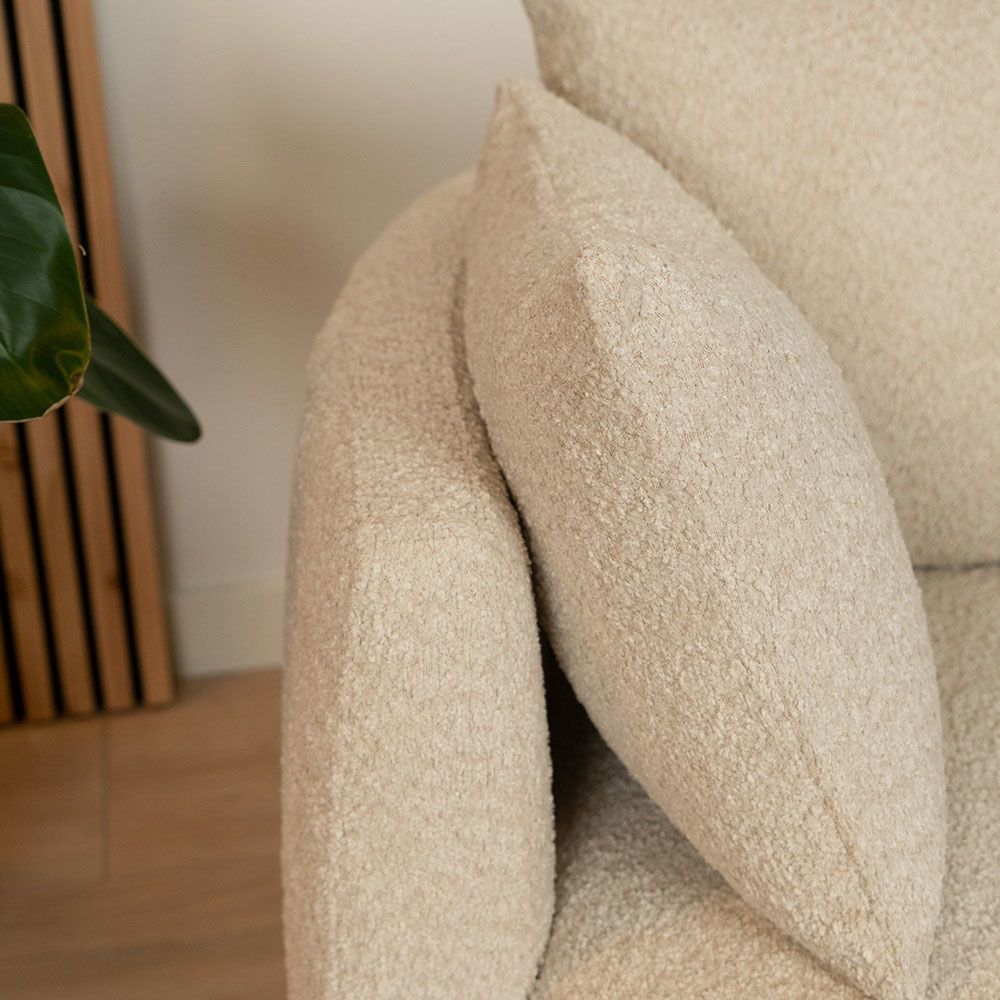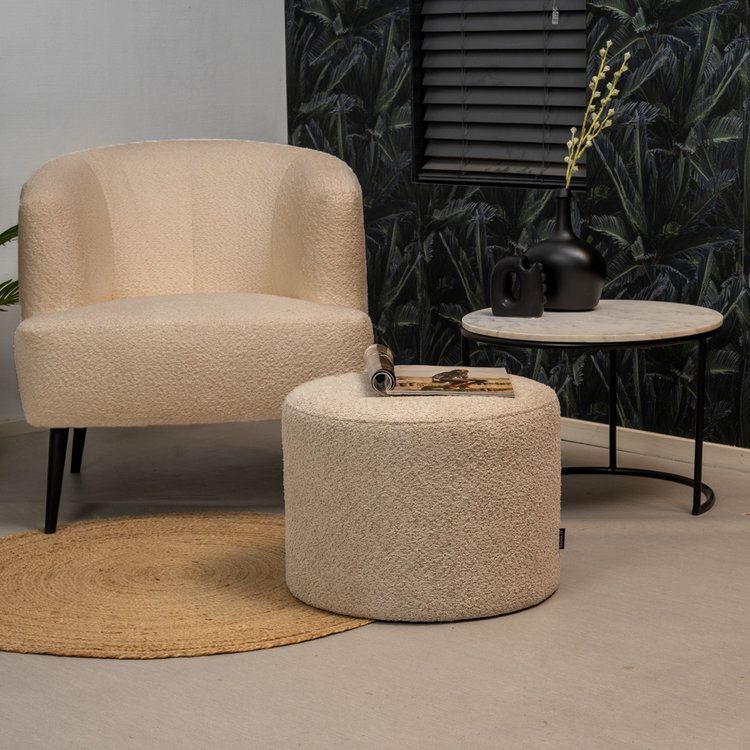 Bouclé Sessel Ruby und Bouclé Hocker Nora beige