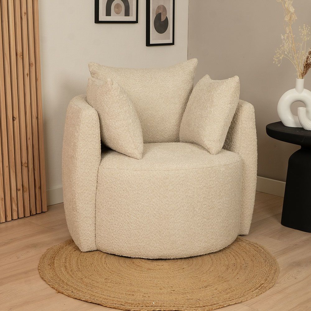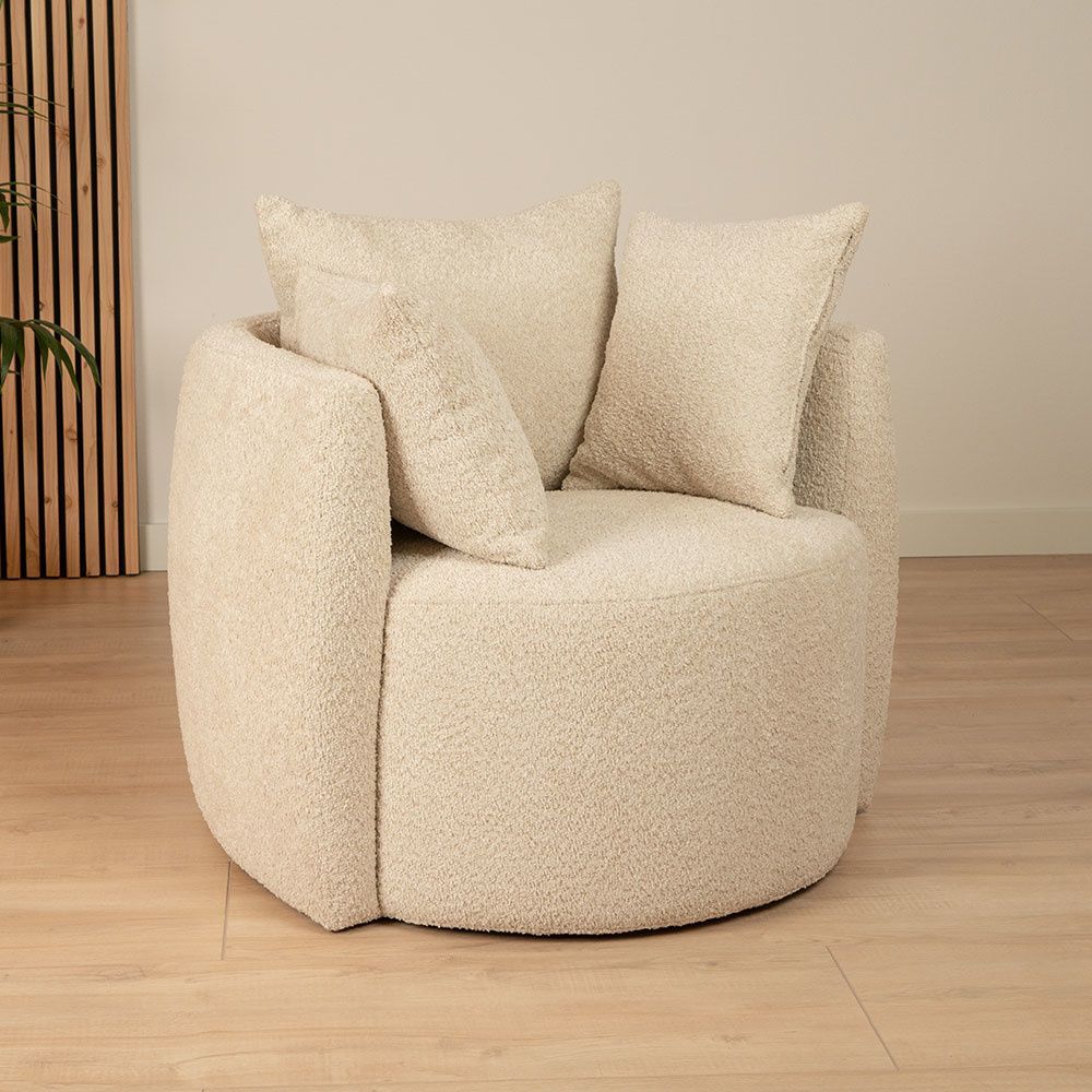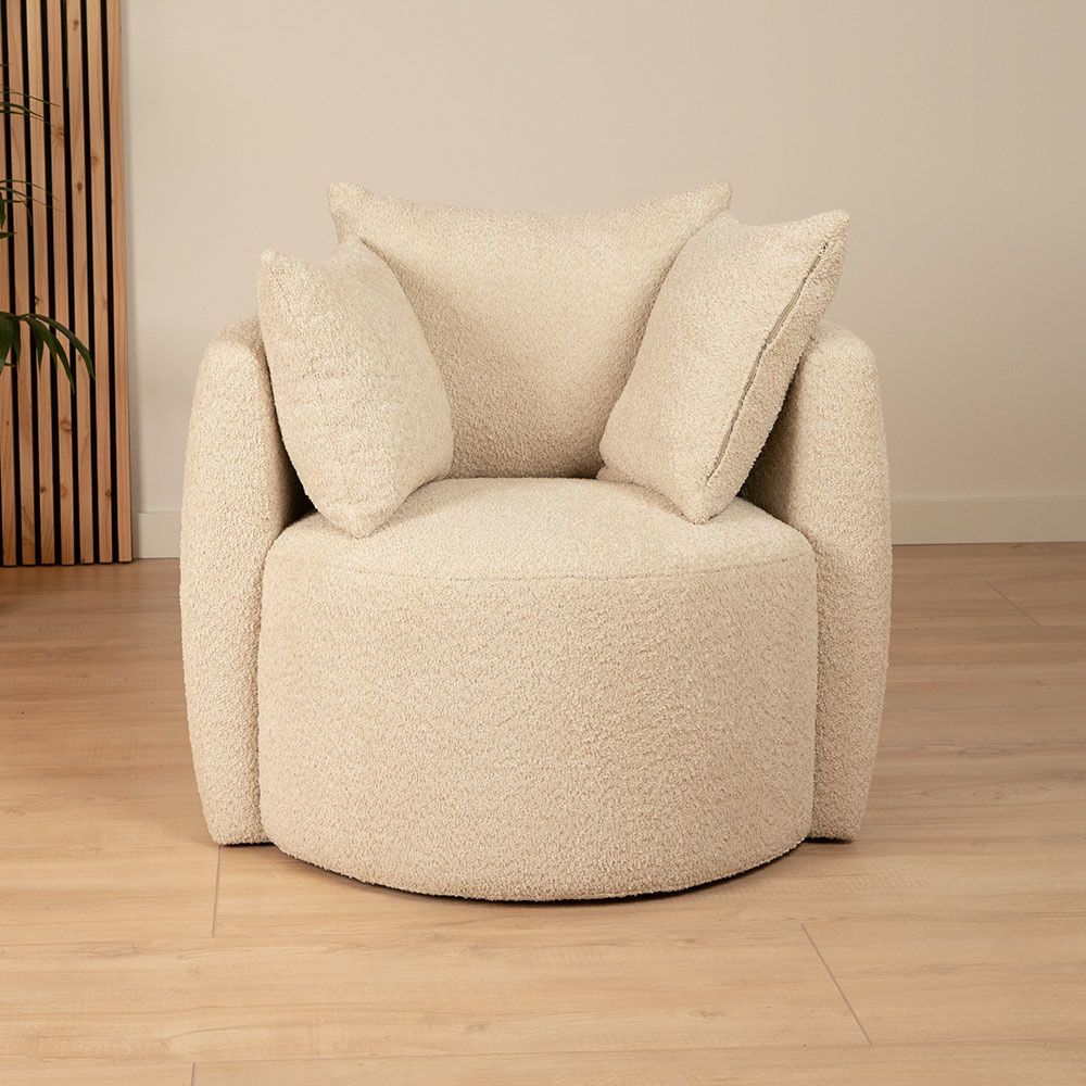 Bouclé Sessel Ruby und Bouclé Hocker Nora beige