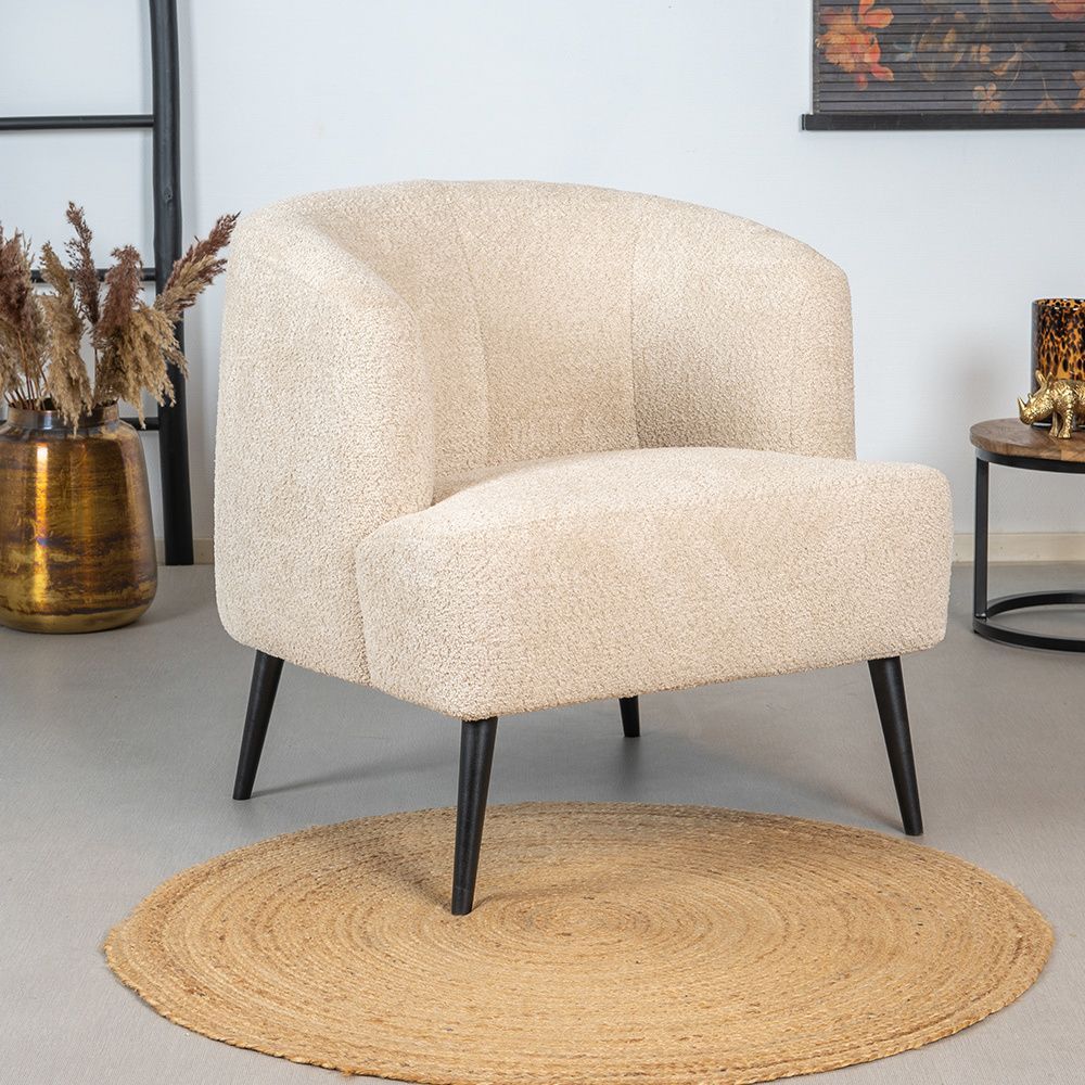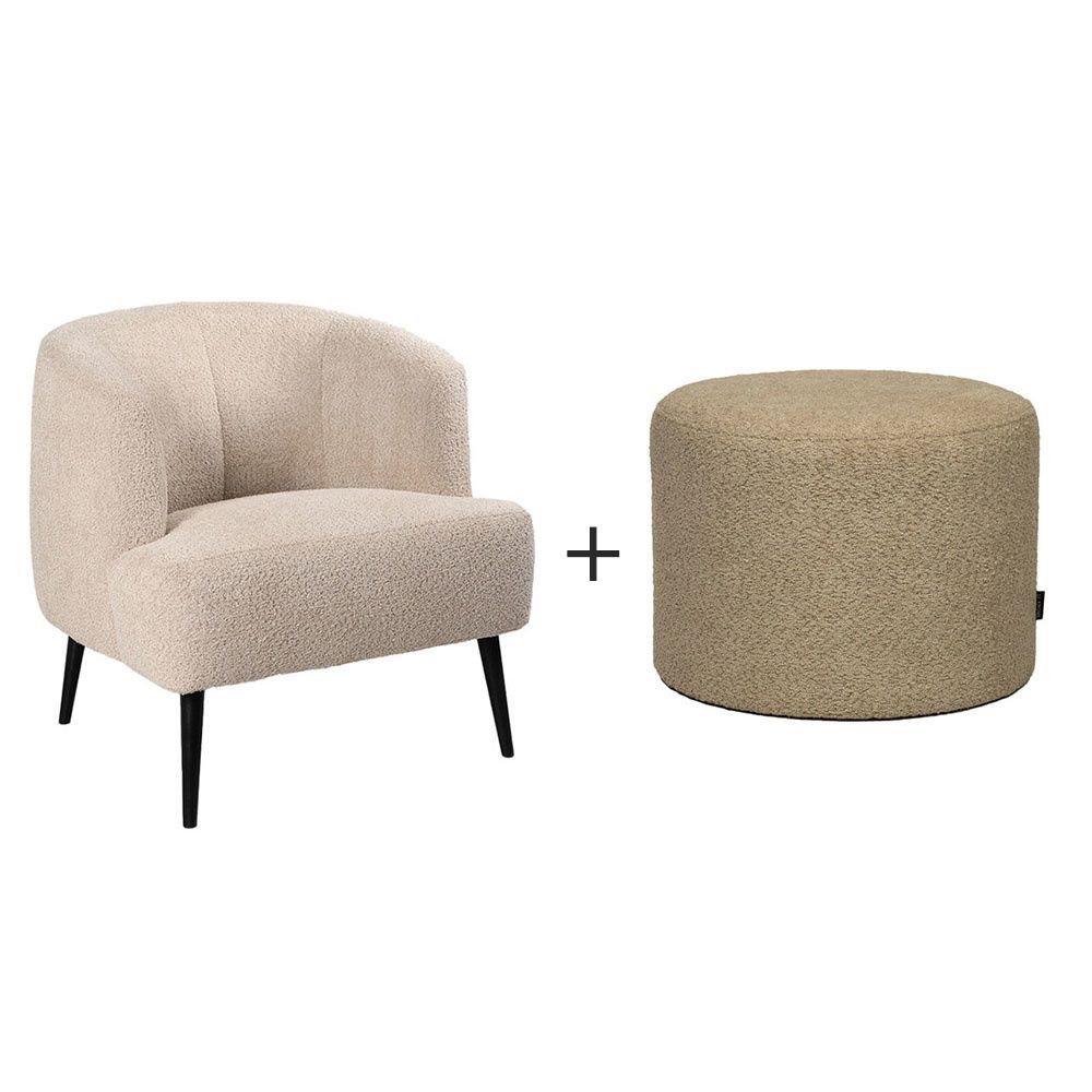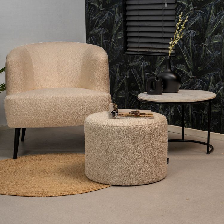 Bouclé Sessel und Hocker Nora modern beige