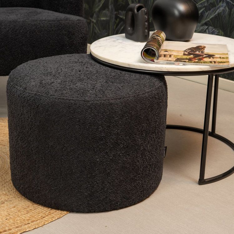 Bouclé Sessel und Hocker Nora modern schwarz