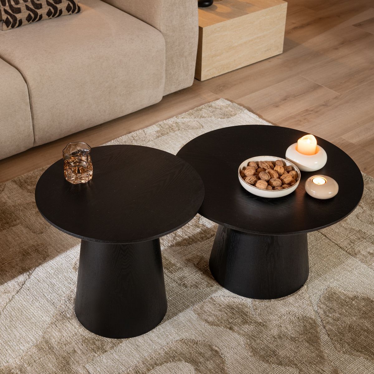 Bronx71 Couchtisch Set Ash rund Ø50 / 62 cm Eiche schwarz
