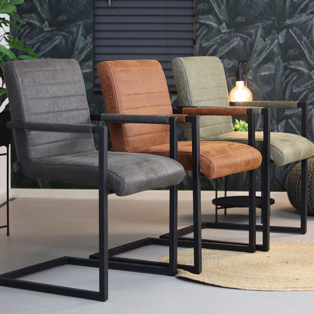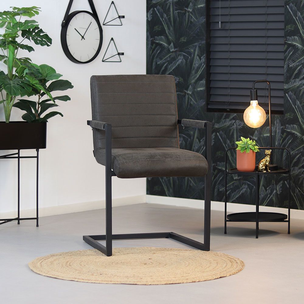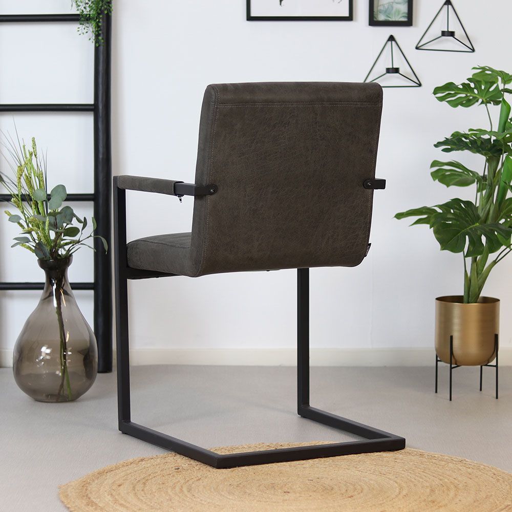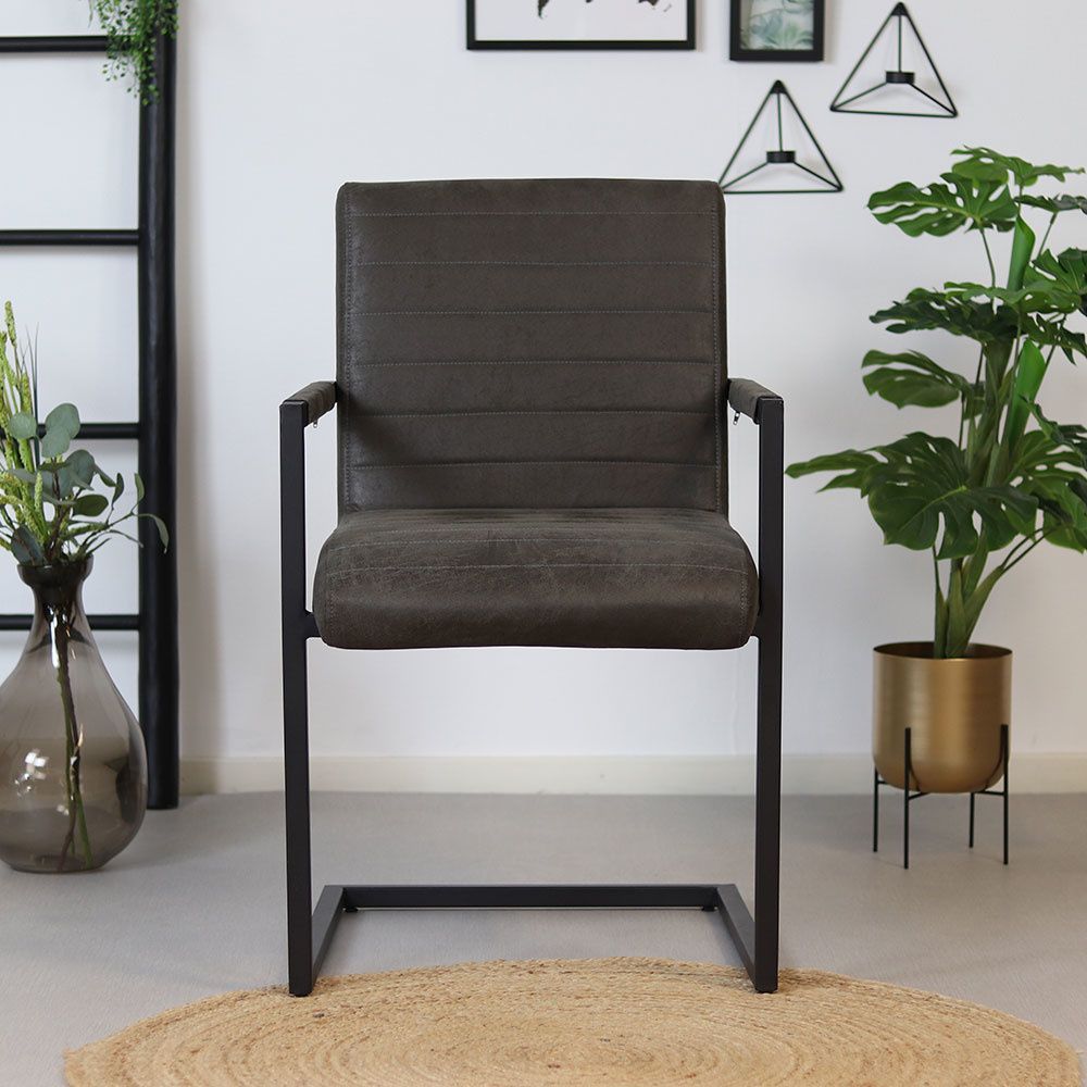 Bronx71 Esszimmerstuhl Eco-Leder Block mit Armlehne anthrazit - 4er Set