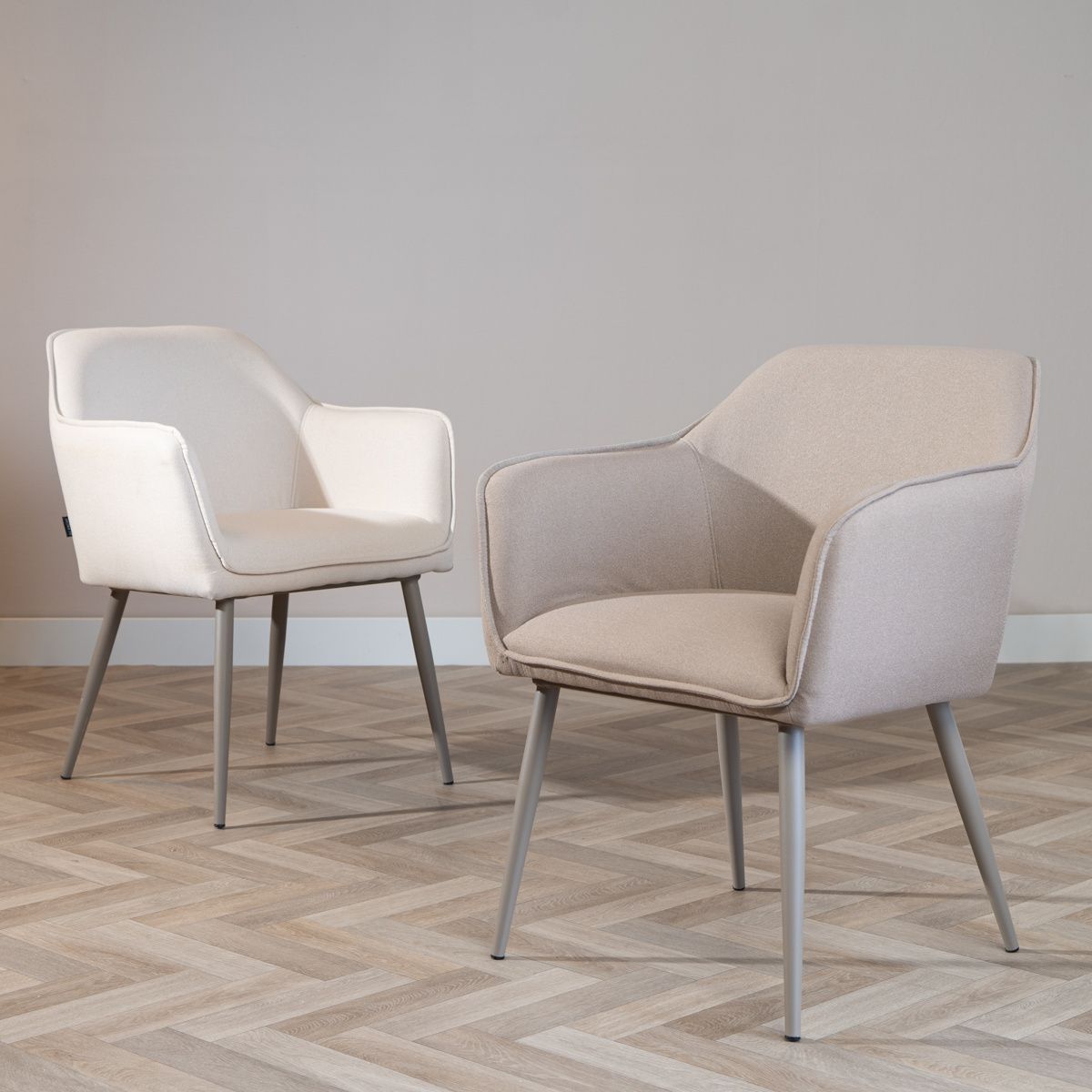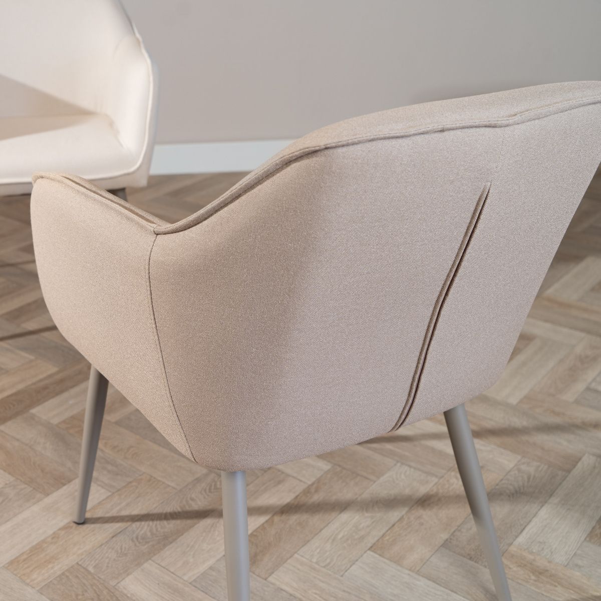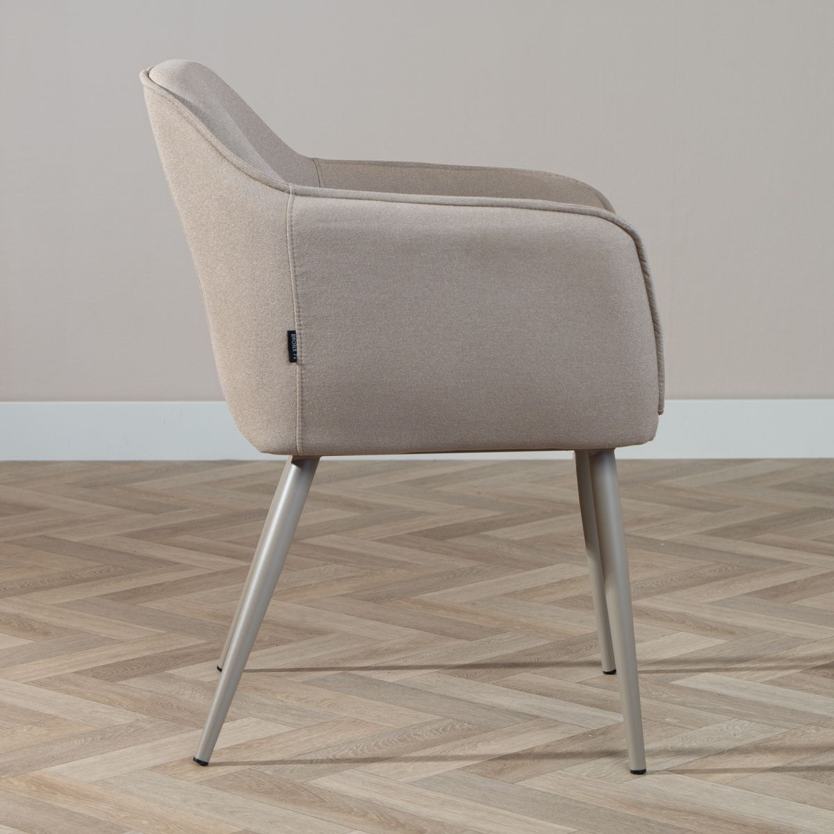 Esszimmerstuhl Elin recycelter Stoff mit Armlehne taupe