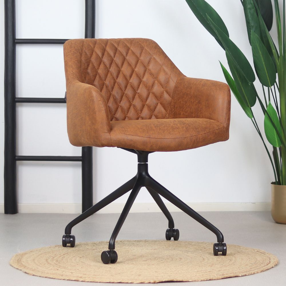 Bronx71 Esszimmerstuhl Leder Levi mit Rollen Cognac - 6er Set