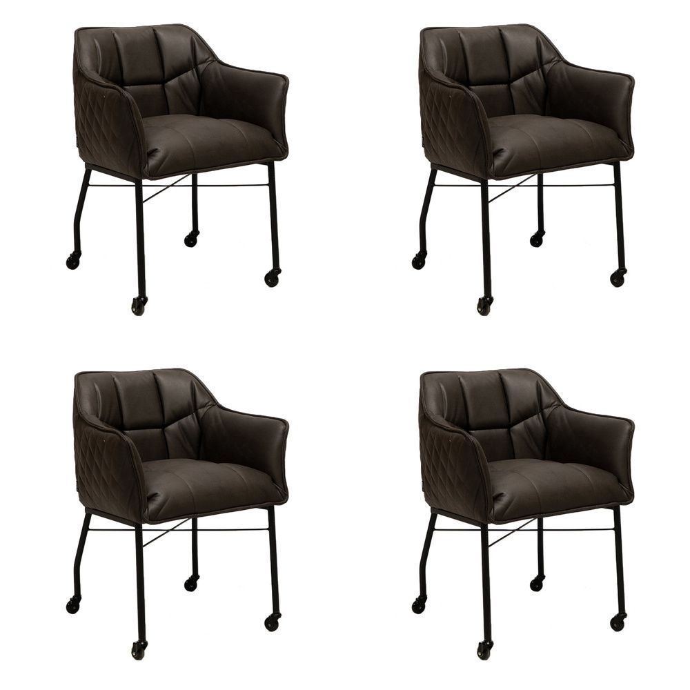 Esszimmerstuhl Leder Royce mit Rollen anthrazit - 4er Set