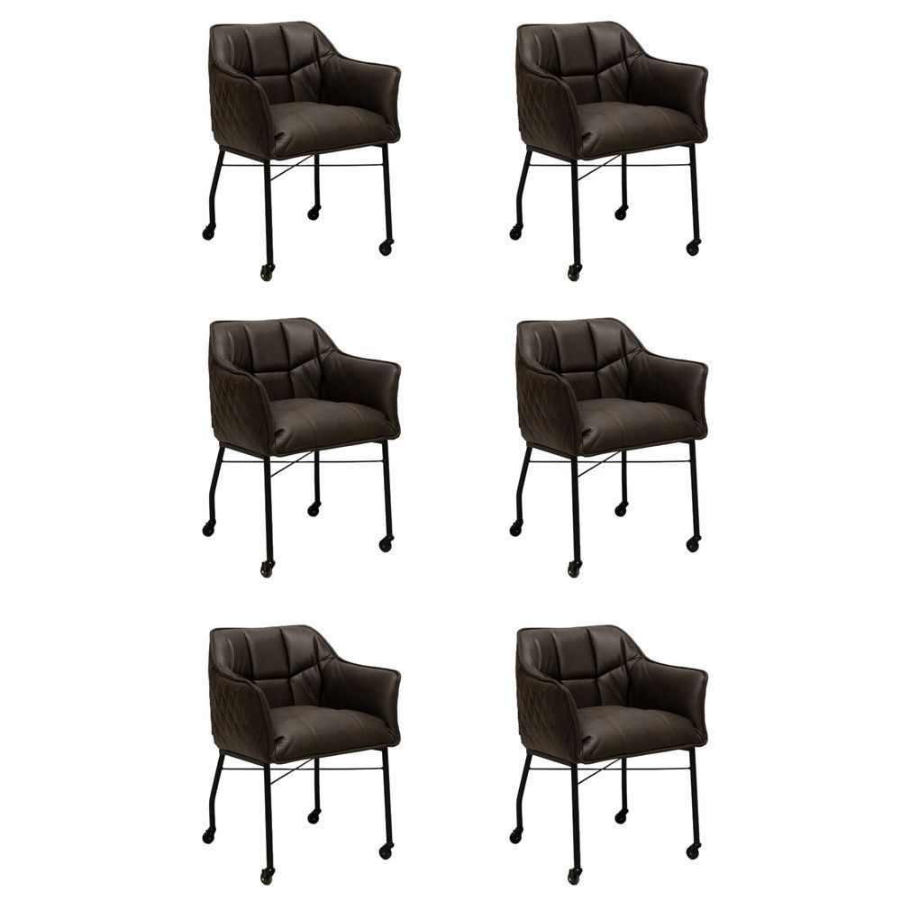 Esszimmerstuhl Leder Royce mit Rollen anthrazit - 6er Set