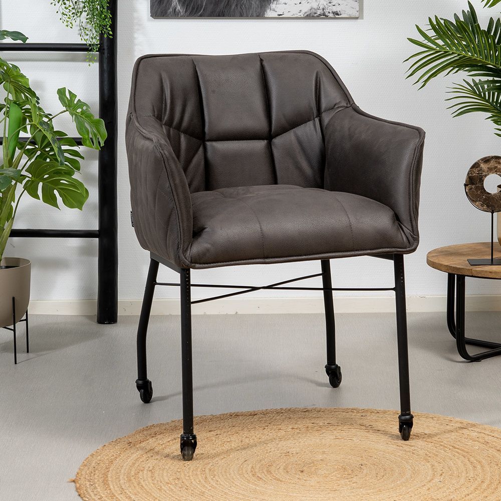 Bronx71 Esszimmerstuhl Leder Royce mit Rollen anthrazit - 6er Set