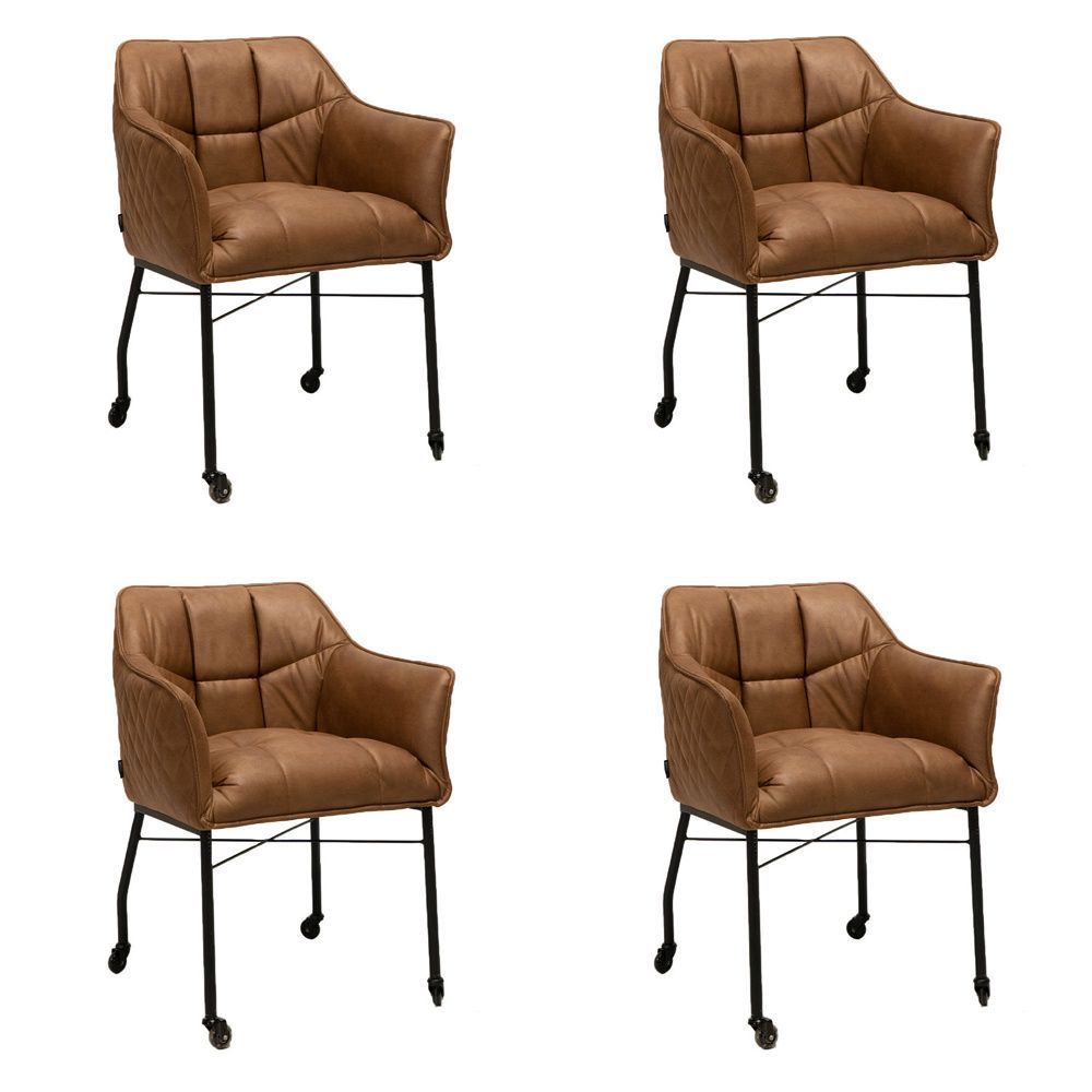 Bronx71 Esszimmerstuhl Leder Royce mit Rollen cognac - 4er Set